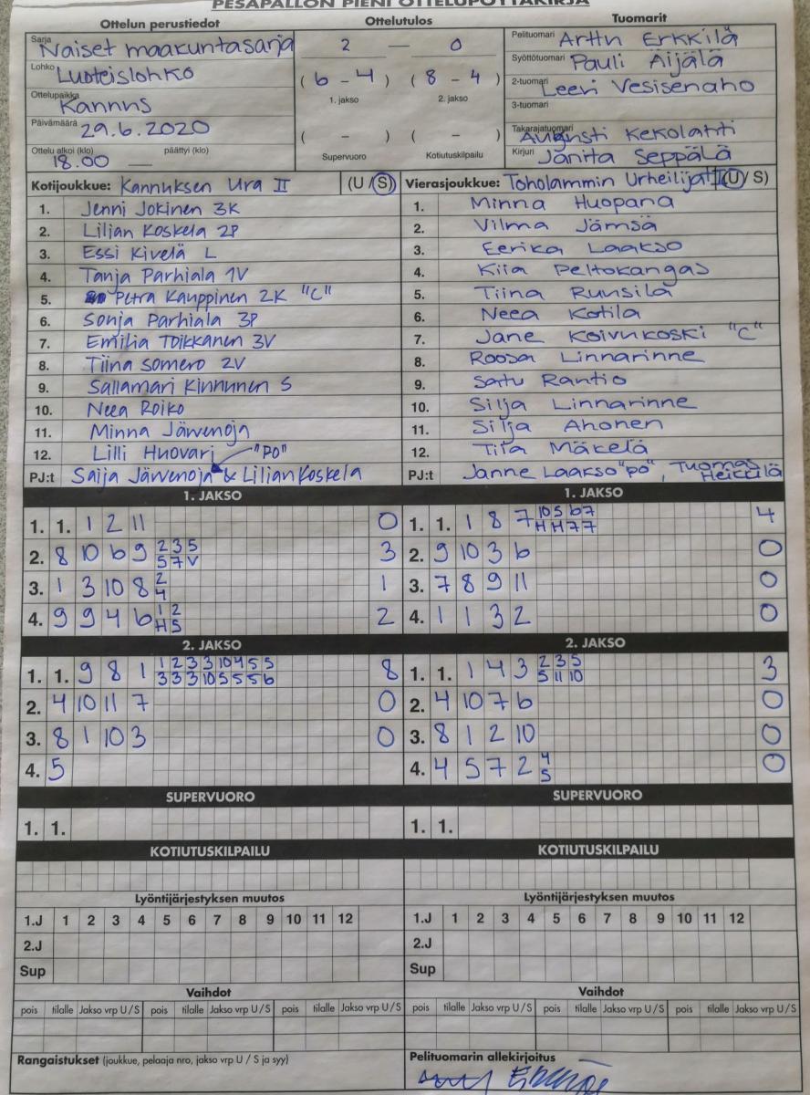 | 837040 | 24.6.2020 | Kinnula | Kannus | 2-0 (15-0, 12-5) | näytä |