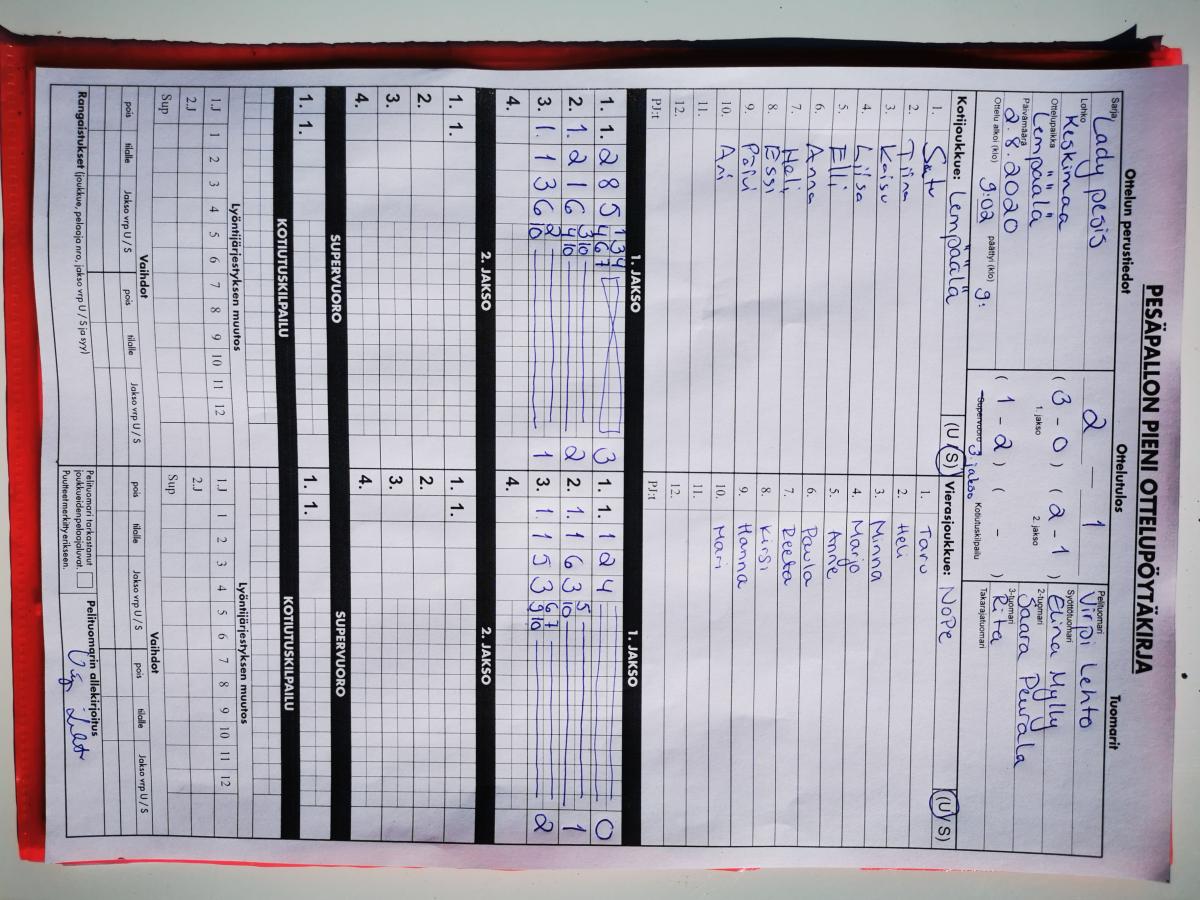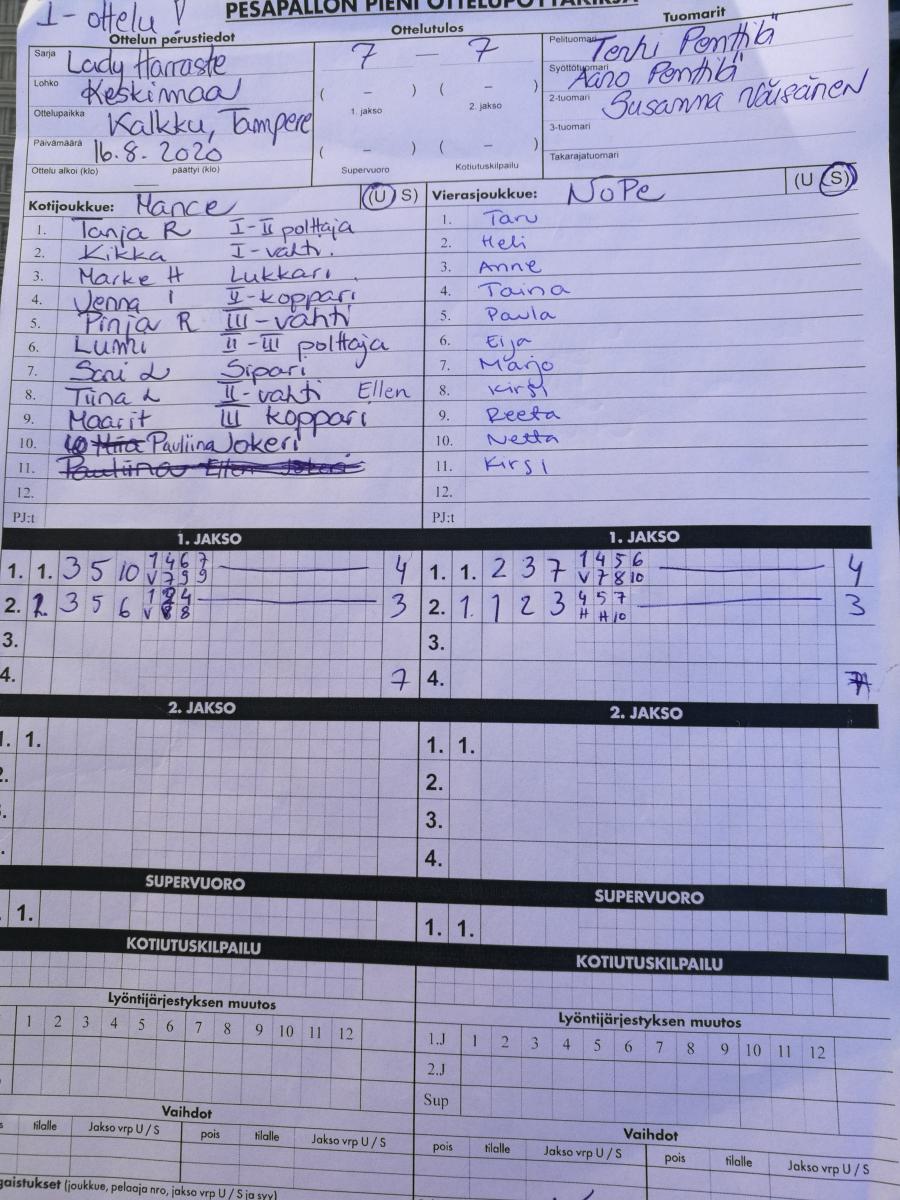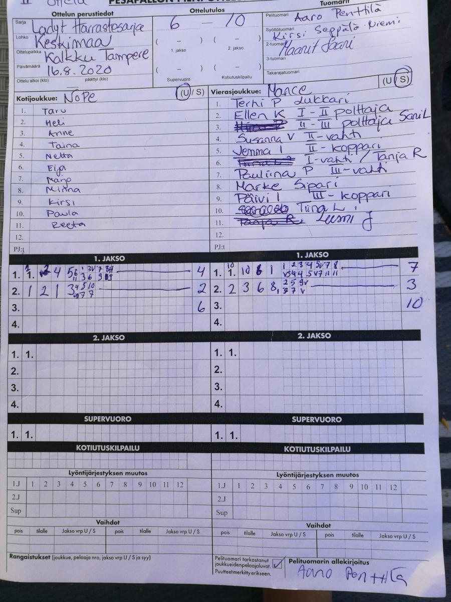 | 848916 | 16.8.2020 14:30 | NoPe | Mances Ladyt | 6-10 | näytä |
