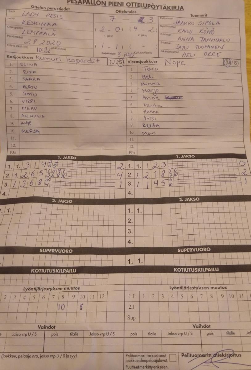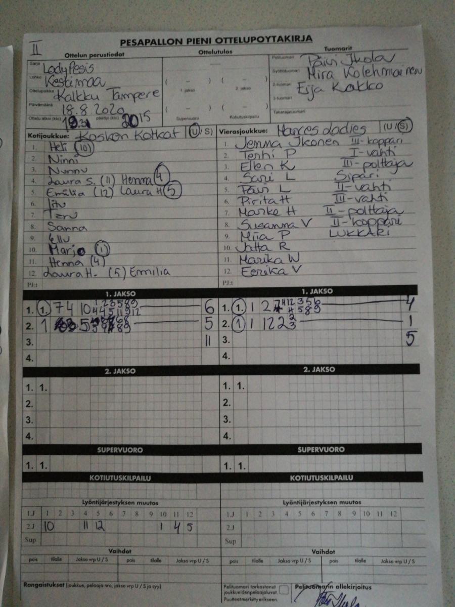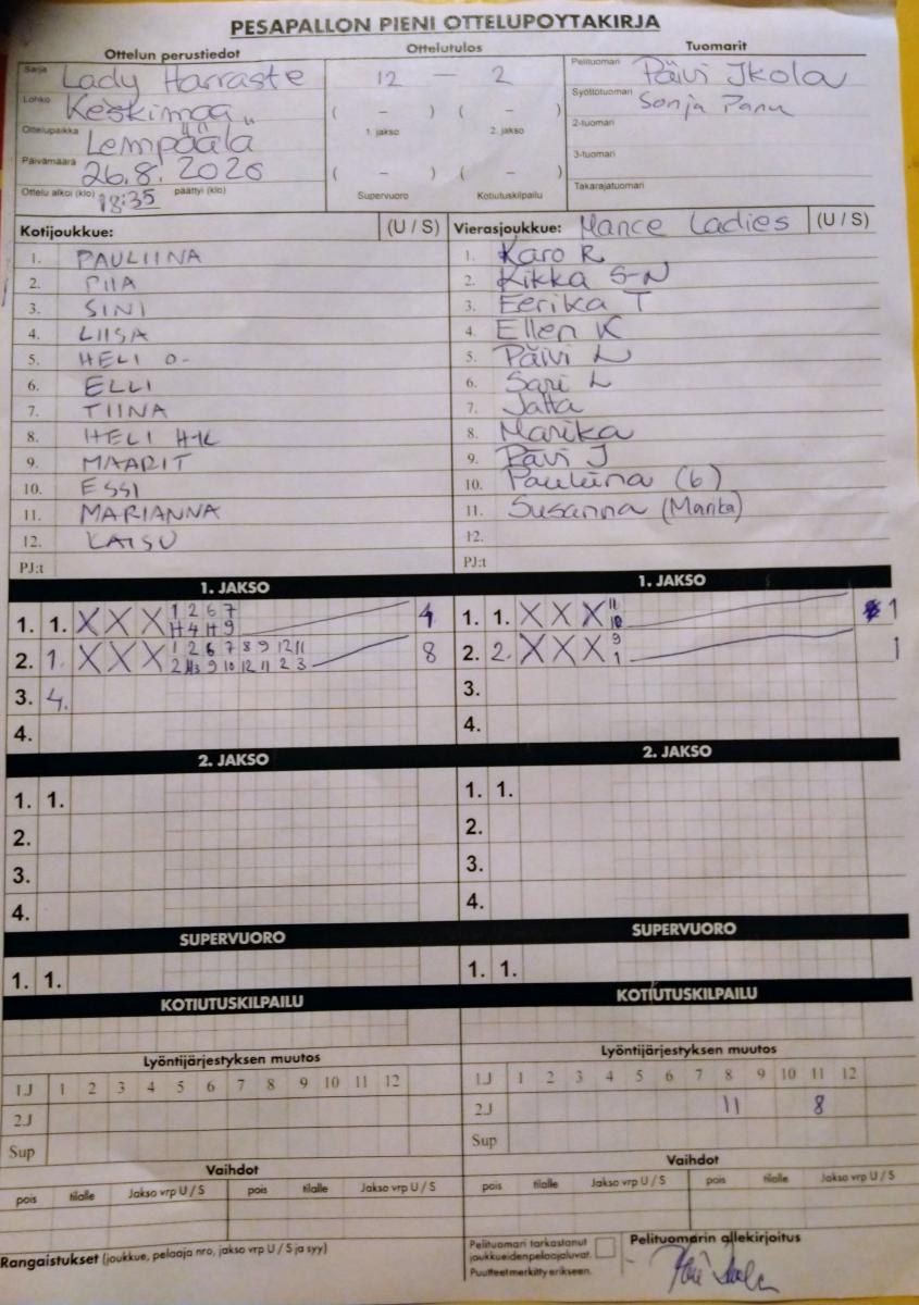 | 848916 | 16.8.2020 14:30 | NoPe | Mances Ladyt | 6-10 | näytä |