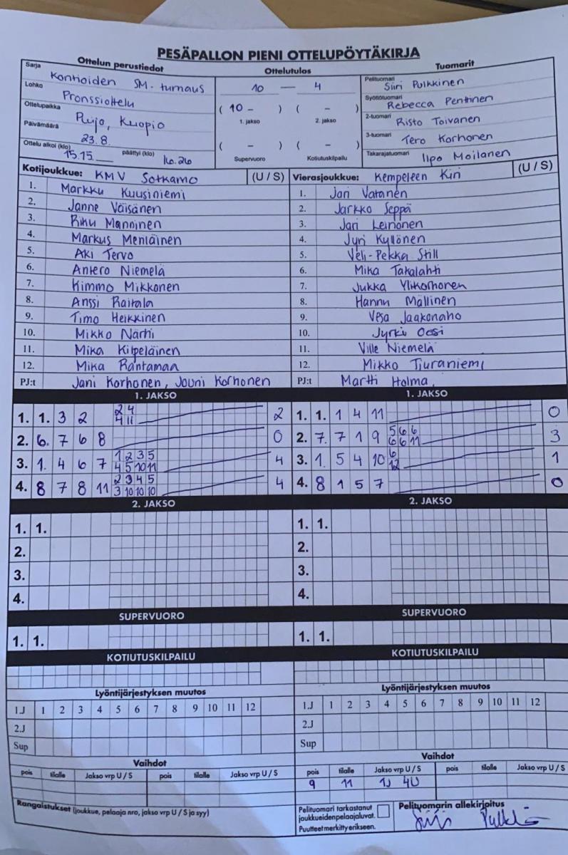 | 854670 | 23.8.2020 15:15 | Puijon pesäpallostadion | Sotkamon Urheiluseura KMV | Kempeleen Kiri | 10-4 | näytä |