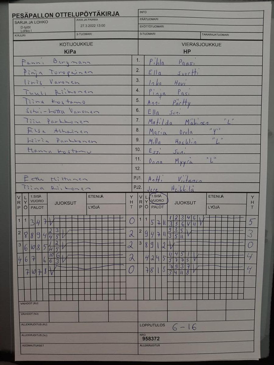 | 958372 | 27.3.2022 13:00 | KiPa | HP | 6-16 | näytä |