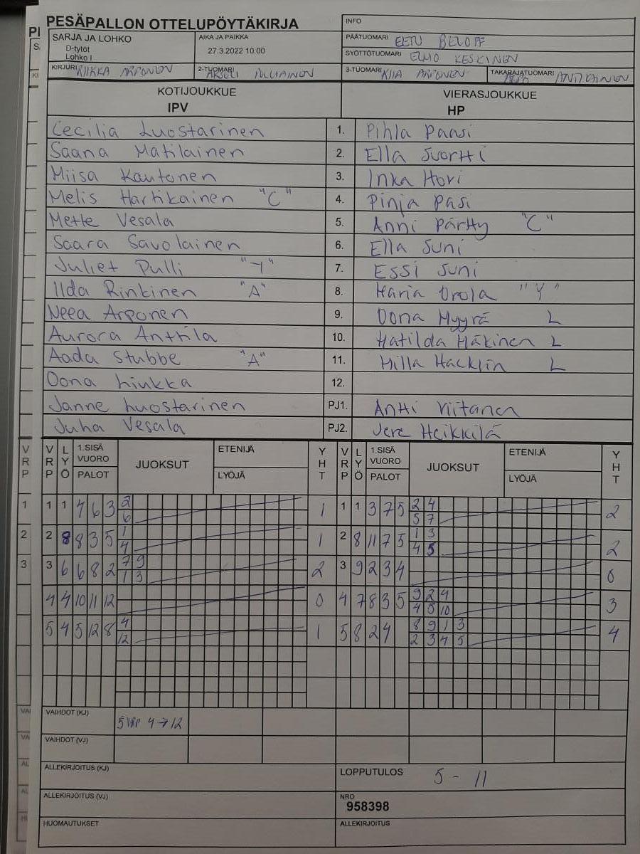 | 958398 | 27.3.2022 10:00 | IPV | HP | 5-11 | näytä |