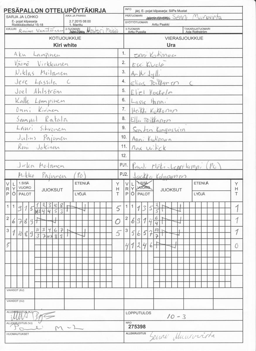 | 275398 | 2.7.2015 08:00 | 1. Manttu | Kiri white | Ura | 10-3 | E- pojat kilpasarja: SiiPe Mustat | näytä |