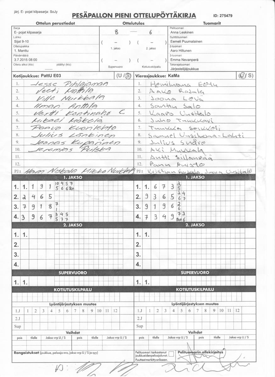 | 275479 | 3.7.2015 08:00 | 1. Manttu | PattU E03 | KaMa | 8-6 | E- pojat kilpasarja: SoJy | näytä |
