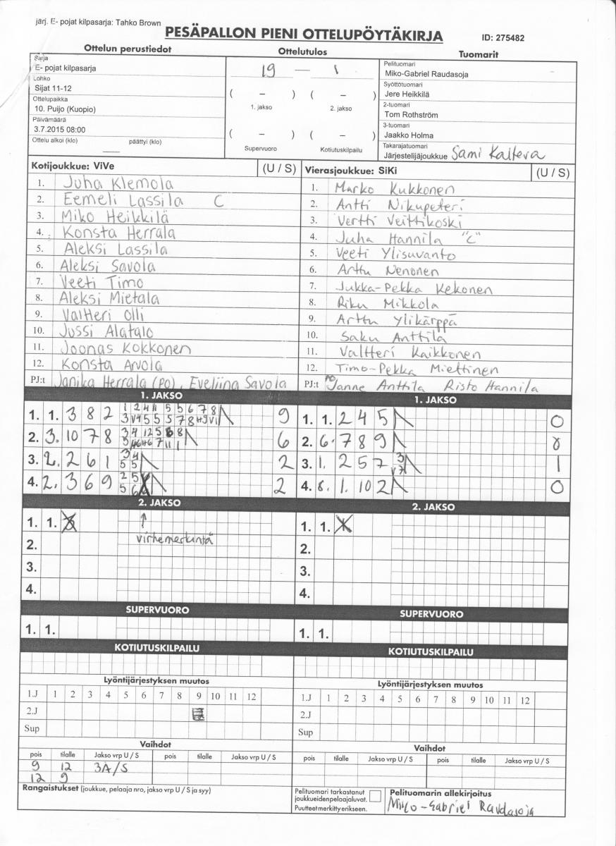 | 275482 | 3.7.2015 08:00 | 10. Puijo (Kuopio) | ViVe | SiKi | 19-1 | E- pojat kilpasarja: Tahko Brown | näytä |