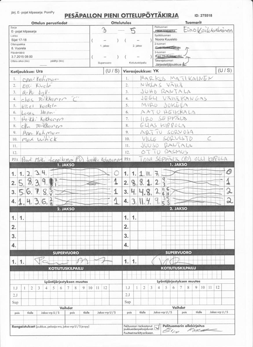 | 275518 | 3.7.2015 08:00 | 8. Vuorela | Ura | YK | 3-5 | E- pojat kilpasarja: PomPy | näytä |