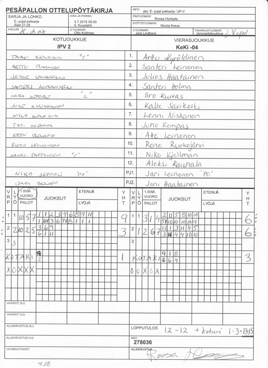 | 278036 | 3.7.2015 09:00 | 5. Kuuslahti | IPV 2 | KeKi -04 | 13-15 | E- pojat pelisarja: UP-V | näytä |