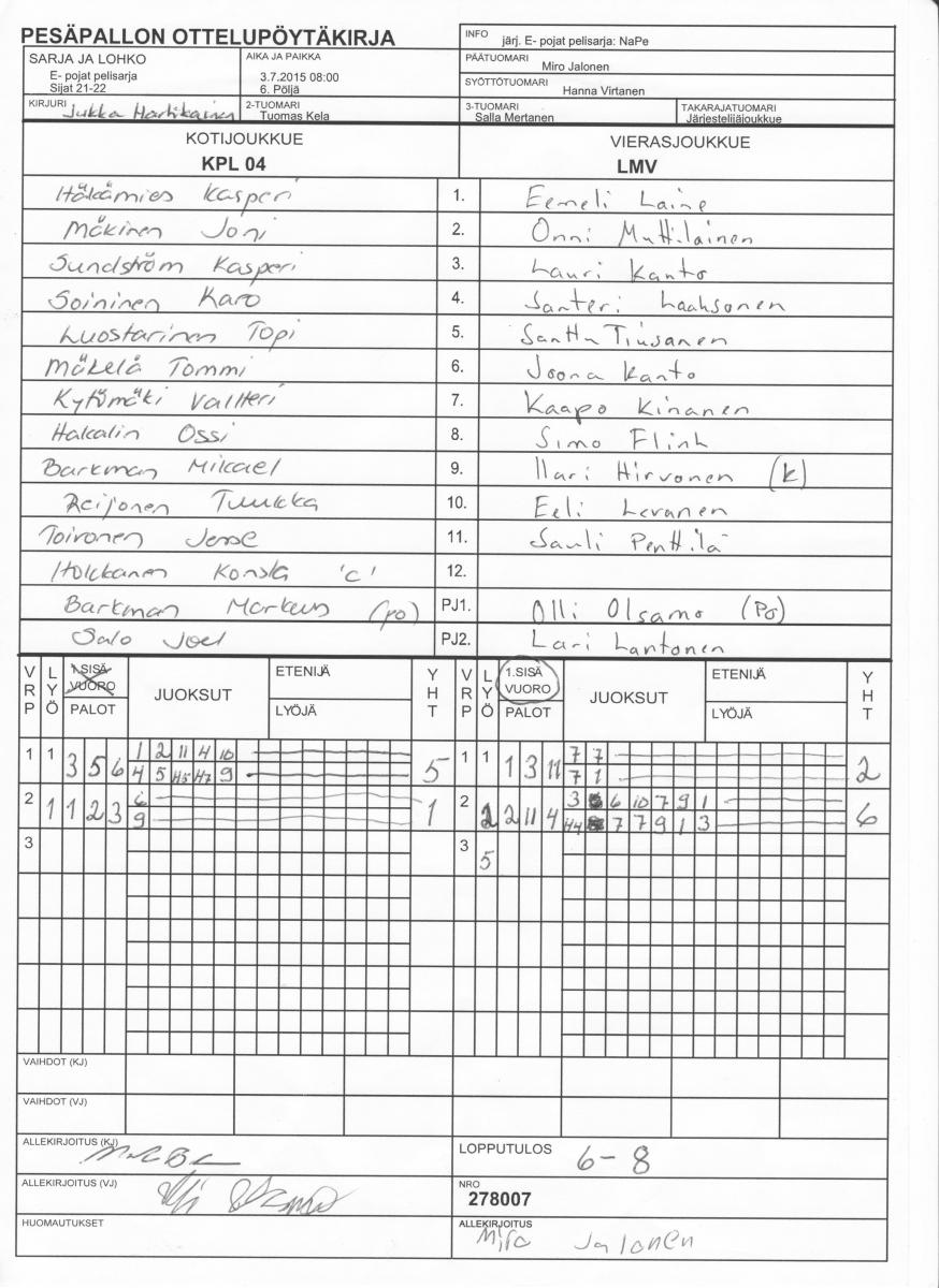 | 278007 | 3.7.2015 08:00 | 6. Pöljä | KPL 04 | LMV | 6-8 | E- pojat pelisarja: NaPe | näytä |