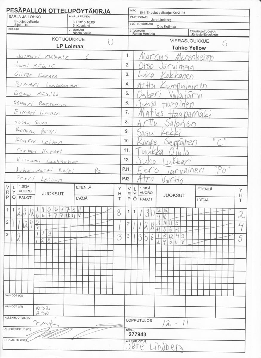 | 277943 | 3.7.2015 10:00 | 5. Kuuslahti | LP Loimaa | Tahko Yellow | 12-11 | E- pojat pelisarja: KeKi -04 | näytä |