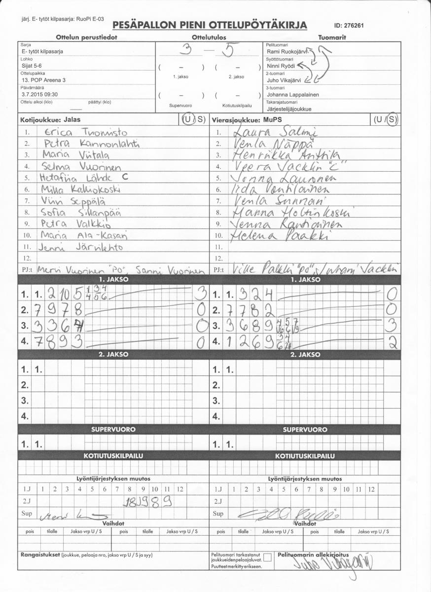 | 276261 | 3.7.2015 09:30 | 13. POP Areena 3 | Jalas | MuPS | 3-5 | E- tytöt kilpasarja: RuoPi E-03 | näytä |