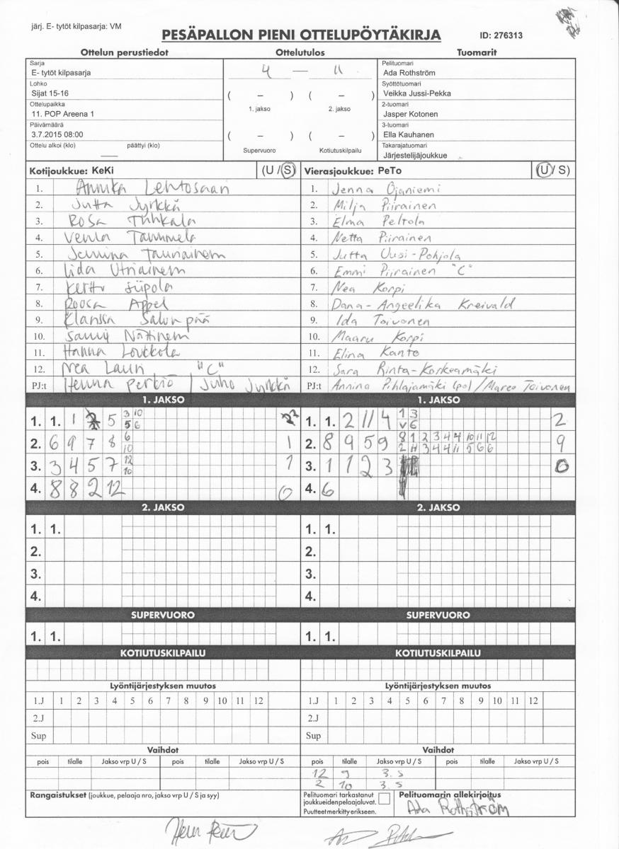 | 276313 | 3.7.2015 08:00 | 11. POP Areena 1 | KeKi | PeTo | 4-11 | E- tytöt kilpasarja: VM | näytä |