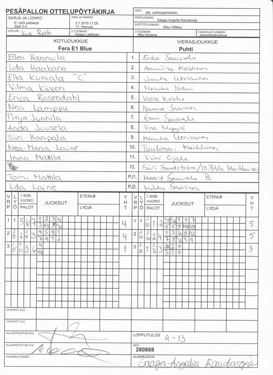 | 280888 | 3.7.2015 11:00 | 17. Hamula | Fera E1 Blue | Puhti | 9-13 | Leiriorganisaatio | näytä |