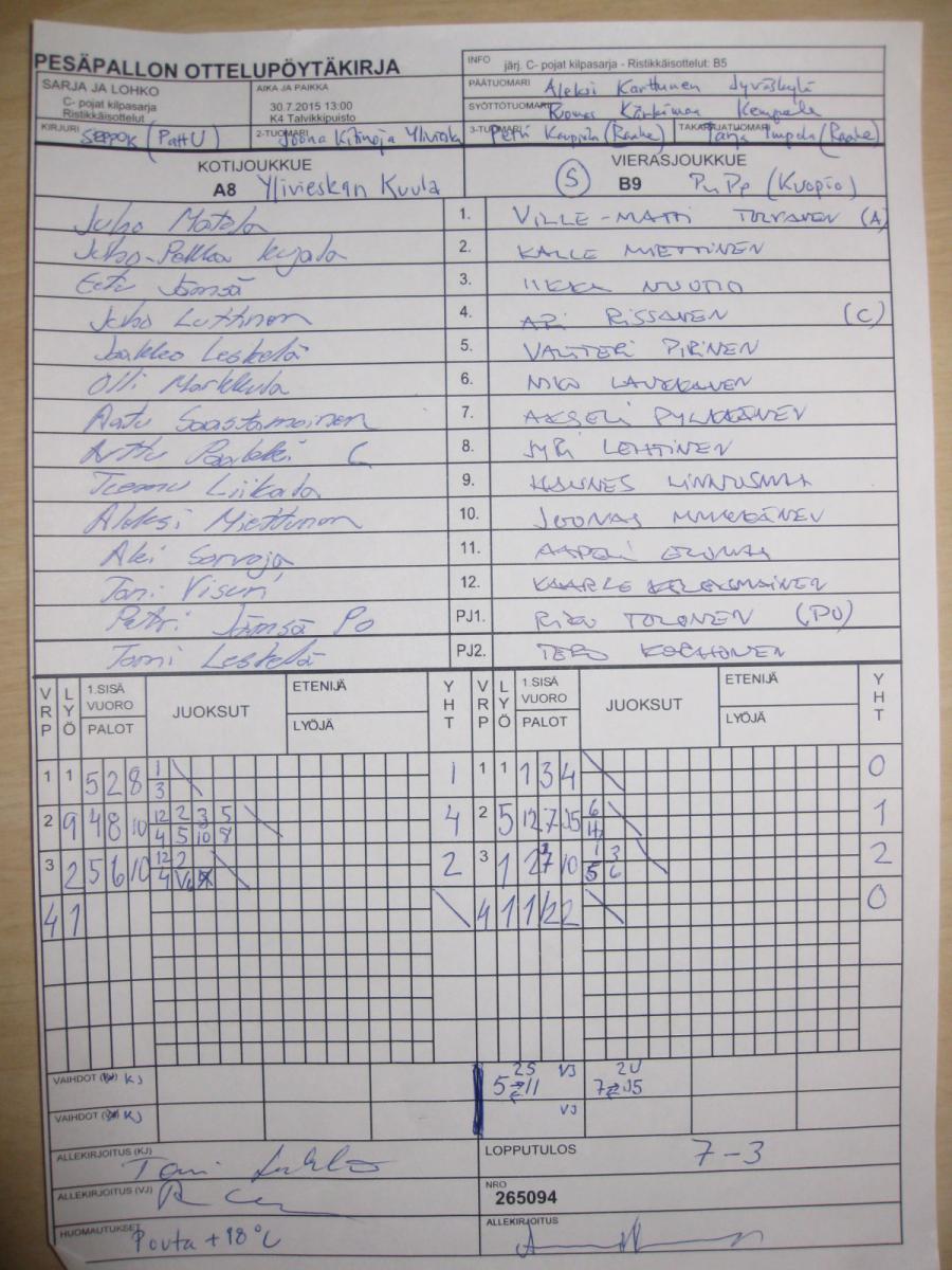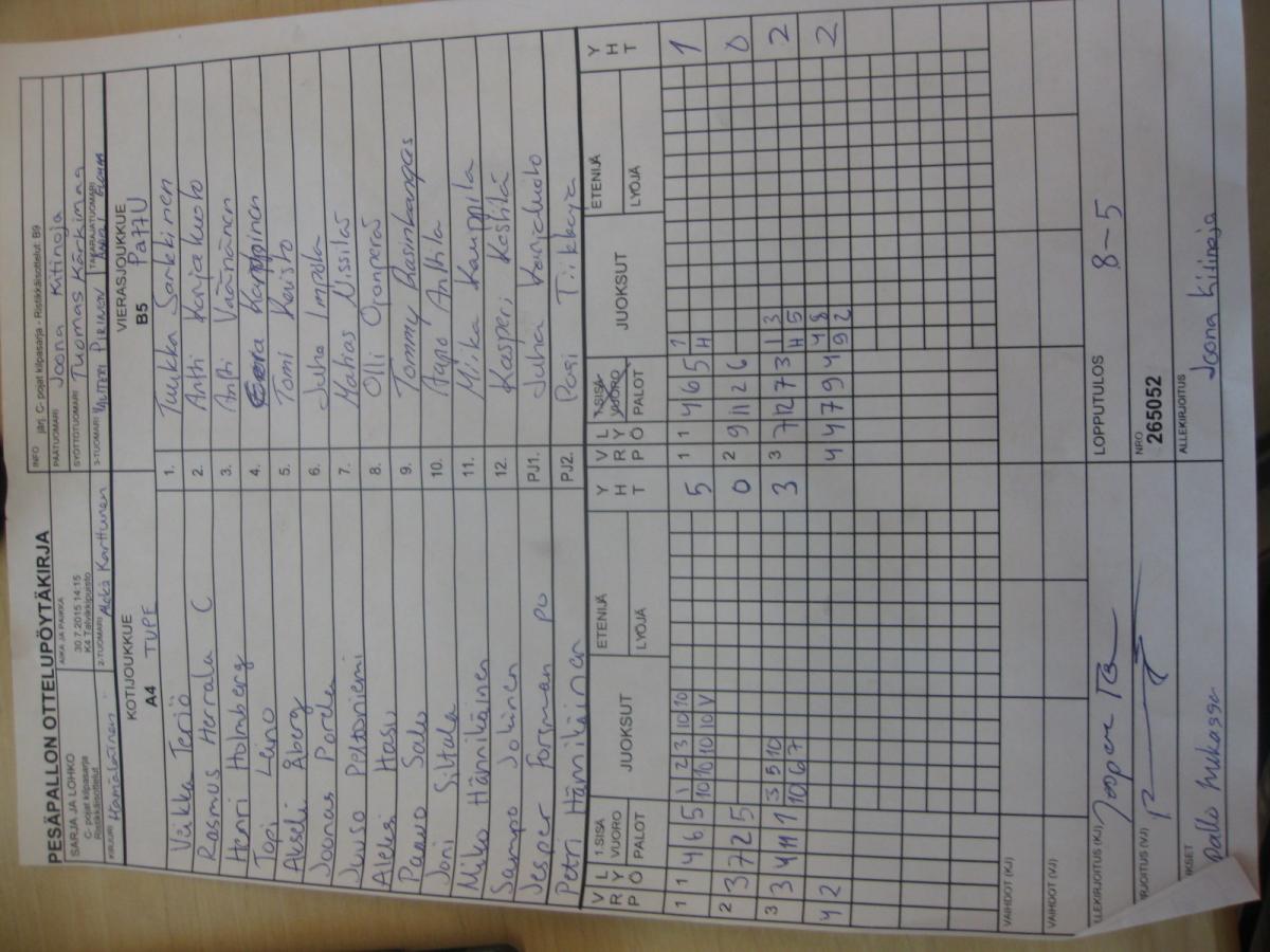 | 265052 | 30.7.2015 14:15 | K4 Talvikkipuisto | TuPe | PattU | 8-5 | C- pojat kilpasarja: PuPe | näytä |