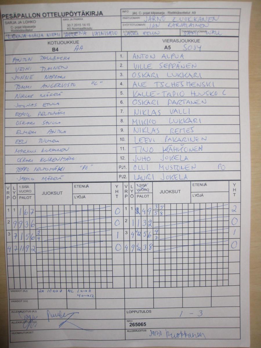 | 265065 | 30.7.2015 14:15 | K5 Normaalikoulu | AA | SoJy | 1-3 | C- pojat kilpasarja: PuMu Red | näytä |