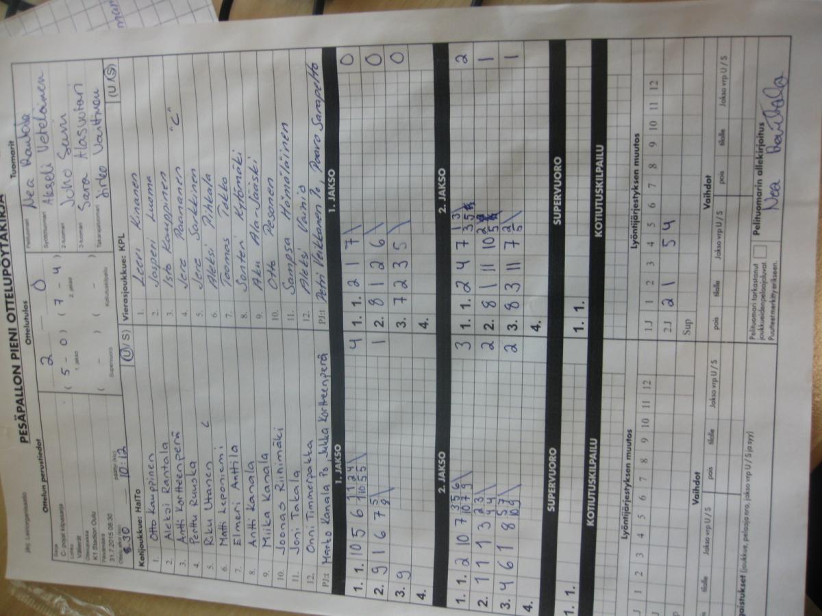 | 265117 | 31.7.2015 08:30 | K1 Stadion Oulu | HalTo | KPL | 2-0 (5-0, 7-4) | Leiriorganisaatio | näytä |