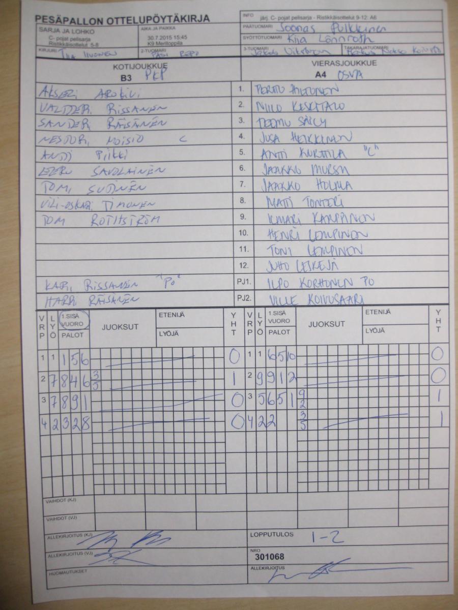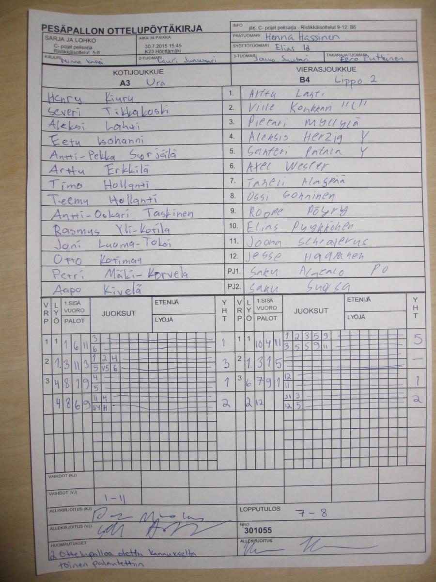 | 301055 | 30.7.2015 15:45 | K23 Hönttämäki | URA | Lippo 2 | 7-8 | C- pojat pelisarja: ViPa/PuMu | näytä |