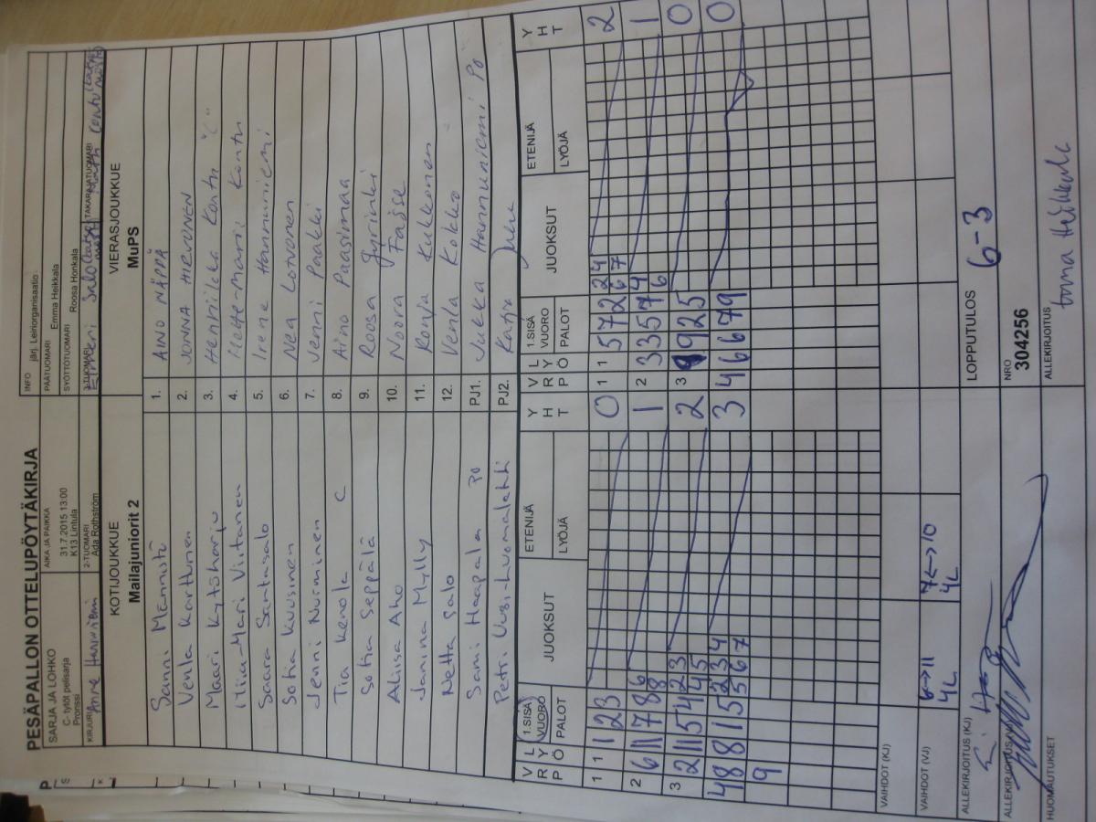 | 304256 | 31.7.2015 13:00 | K13 Lintula | Mailajuniorit 2 | MuPS | 6-3 | Leiriorganisaatio | näytä |