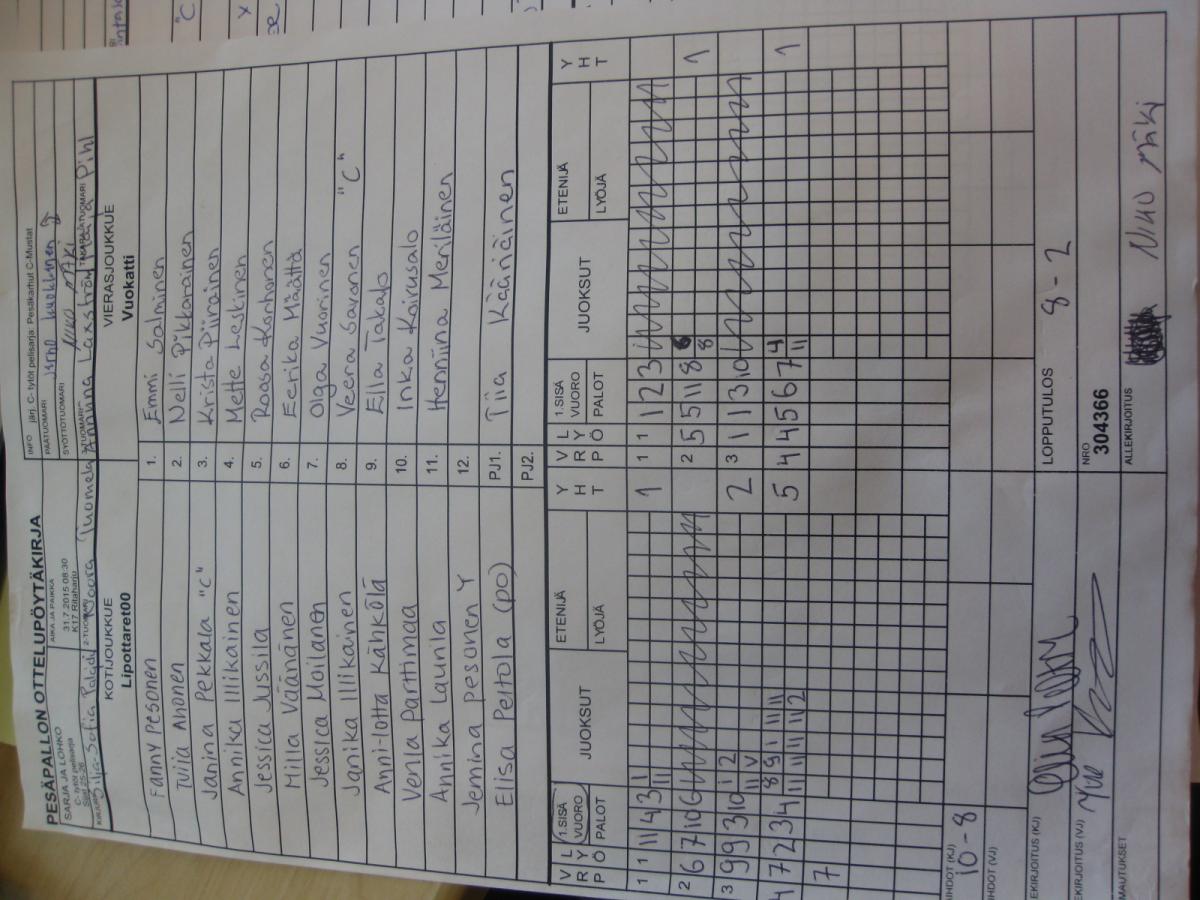 | 304366 | 31.7.2015 08:30 | K17 Ritaharju | Lipottaret00 | Vuokatti | 8-2 | C- tytöt pelisarja: Pesäkarhut C-Mustat | näytä |