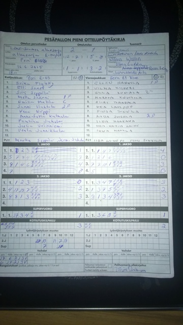 | 229331 | 2.6.2015 18:00 | Fera E1 Blue | Pesäkarhut E-04 Carrut | 1-0 (7-4, 4-4) | |