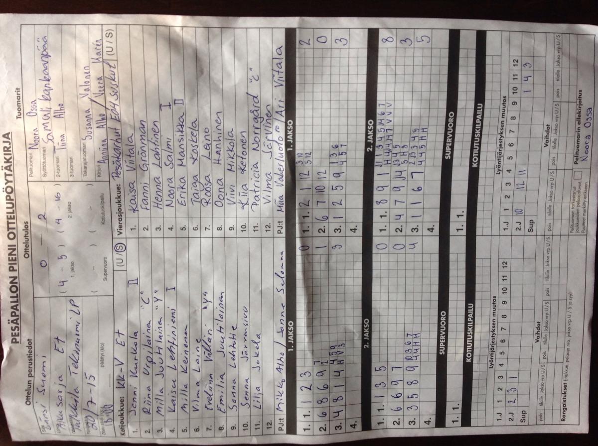 | 229496 | 15.6.2015 18:00 | Ruopi E04 | Pesäkarhut E-04 Suskut | 0-2 (2-22, 3-13) | |