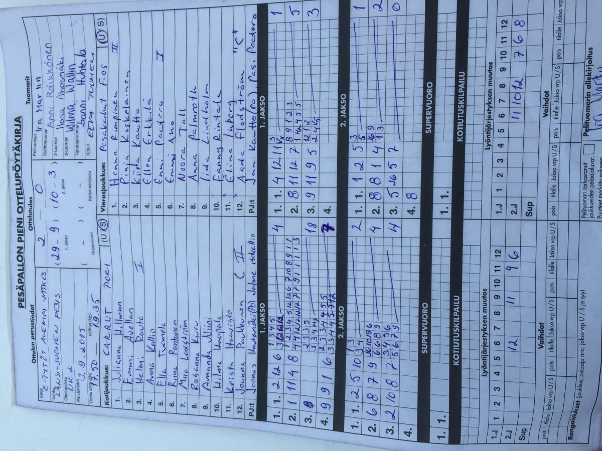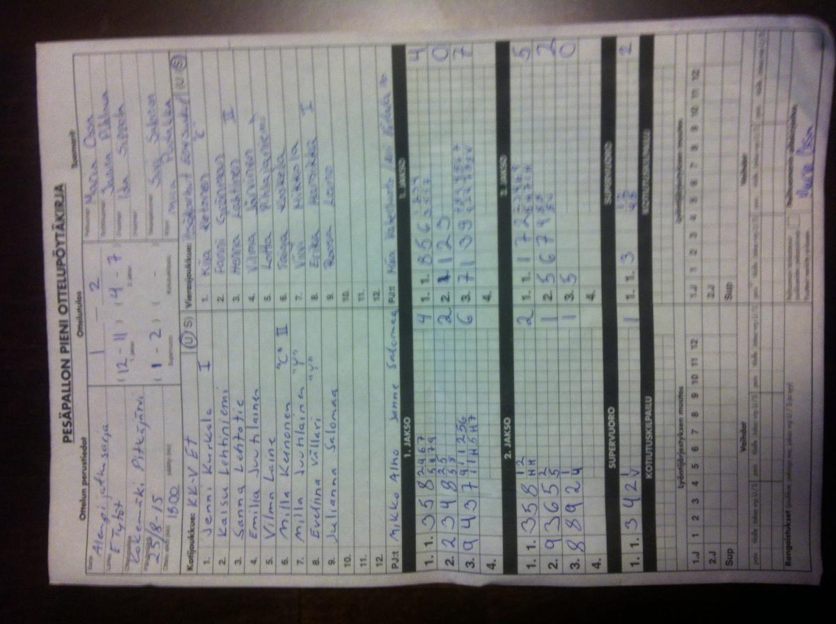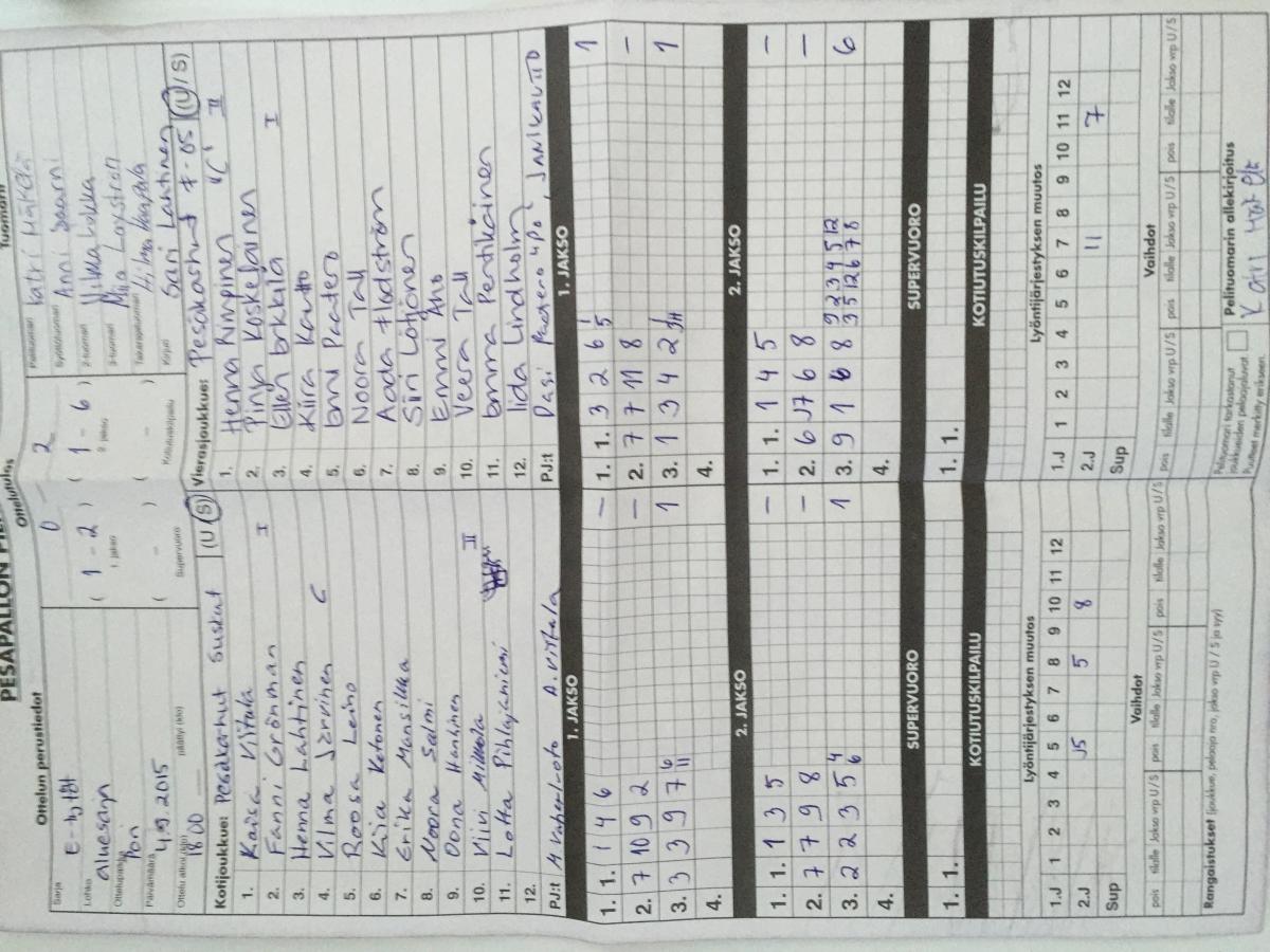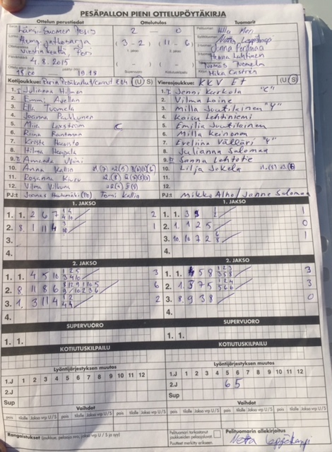 | 306238 | 16.8.2015 15:00 | Ruopi E04 | Pesäkarhut E-04 Carrut | 2-1 (18-7, 9-17, 9-2) | |