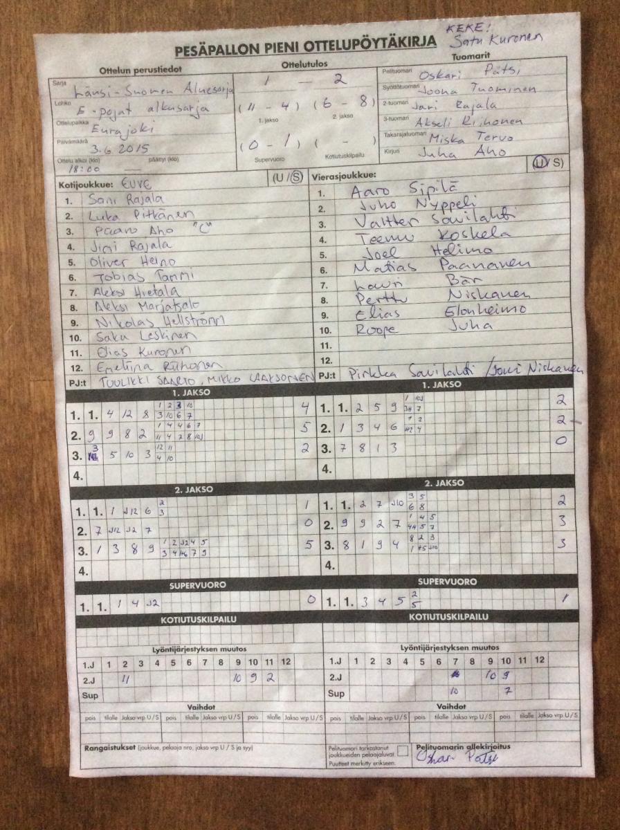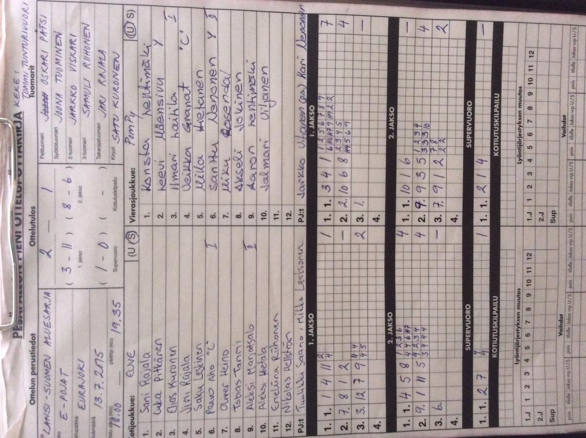 | 231293 | 27.7.2015 18:00 | UP-V E-pojat | EuVe | 0-2 (2-4, 0-14) | |