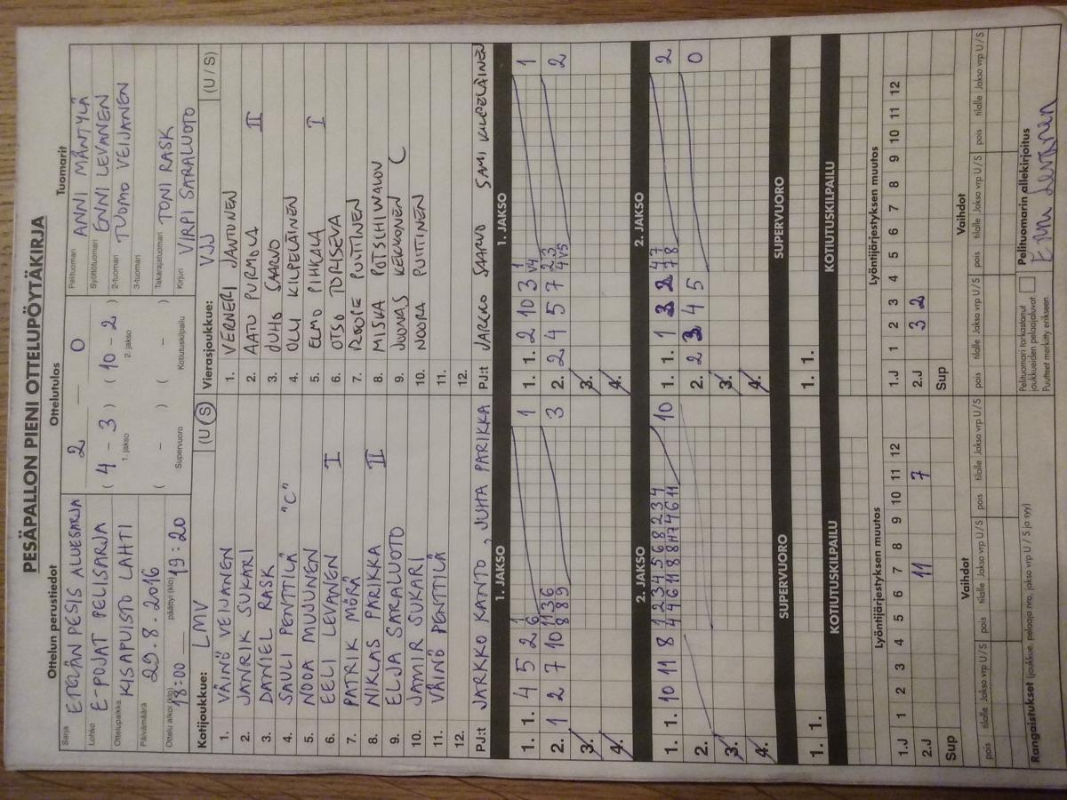 | 417389 | 29.8.2016 | LMV EP2 | VJJ-05 | 2-0 (4-3, 10-2) | näytä |