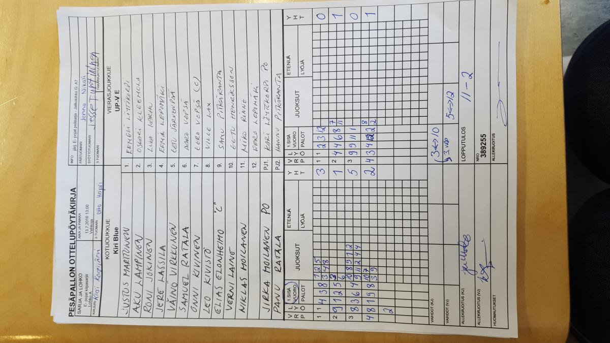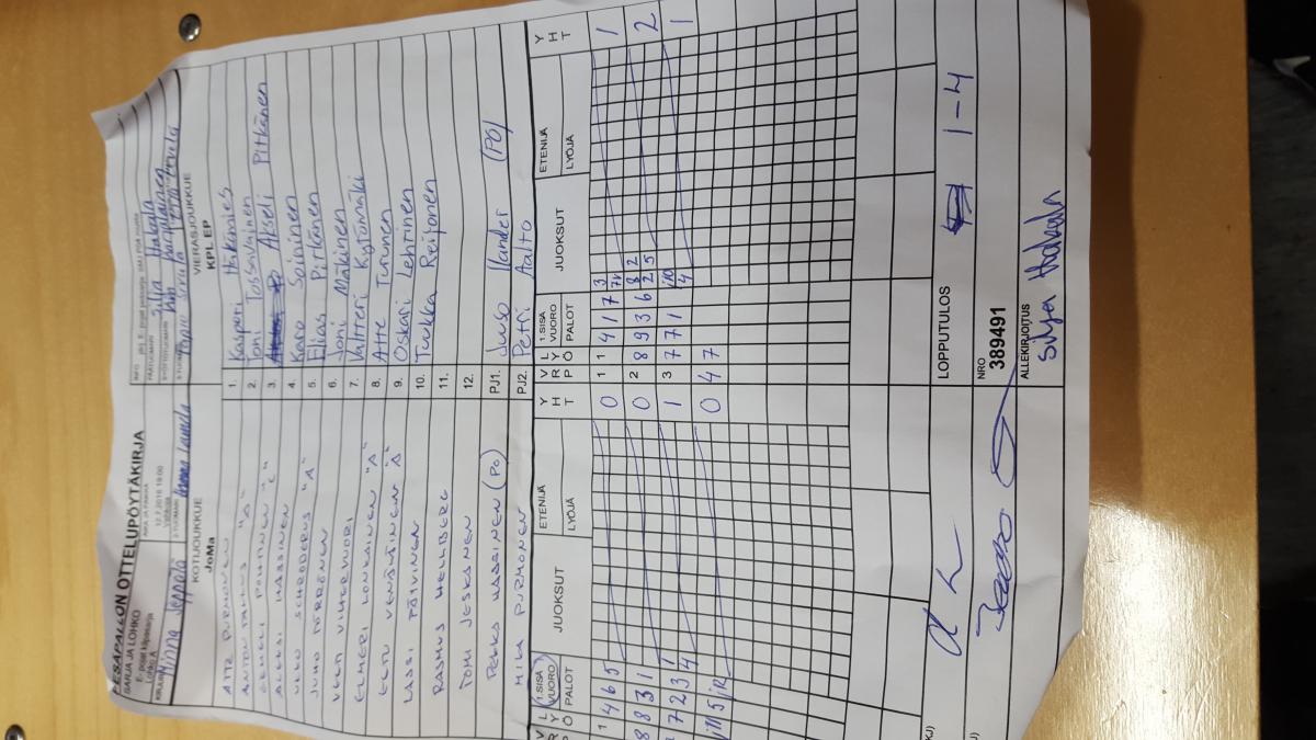 | # | Joukkue | O | V | T | H | JUOKSUT | P |