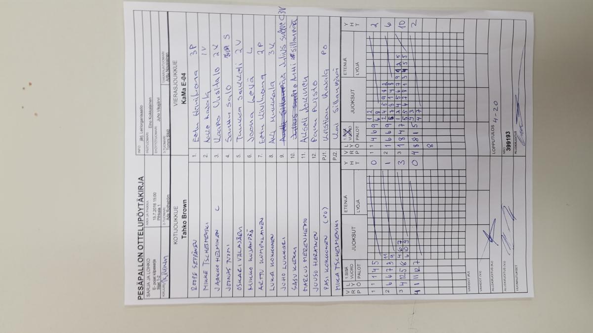 | 399193 | 15.7.2016 15:00 | Pihkala 1 | Tahko Brown | KaMa E-04 | 4-20 | Leiriorganisaatio | näytä |