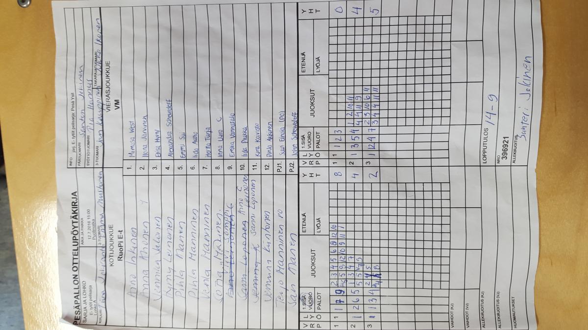 | 4. | Pesä Ysit | 6 | 3 | 0 | 3 | 69 - 67 | 6 |
