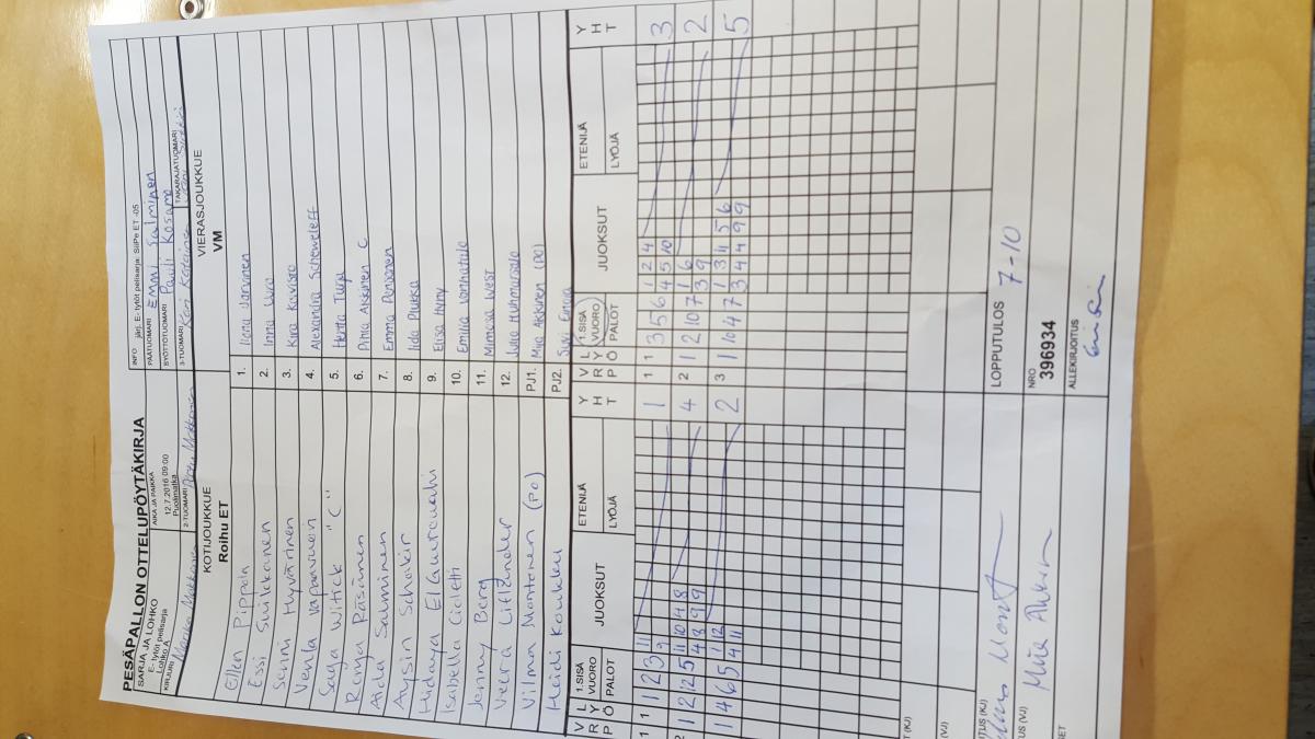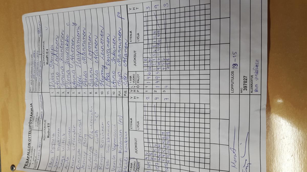 | 6. | Roihu ET | 6 | 1 | 0 | 5 | 62 - 79 | 2 |