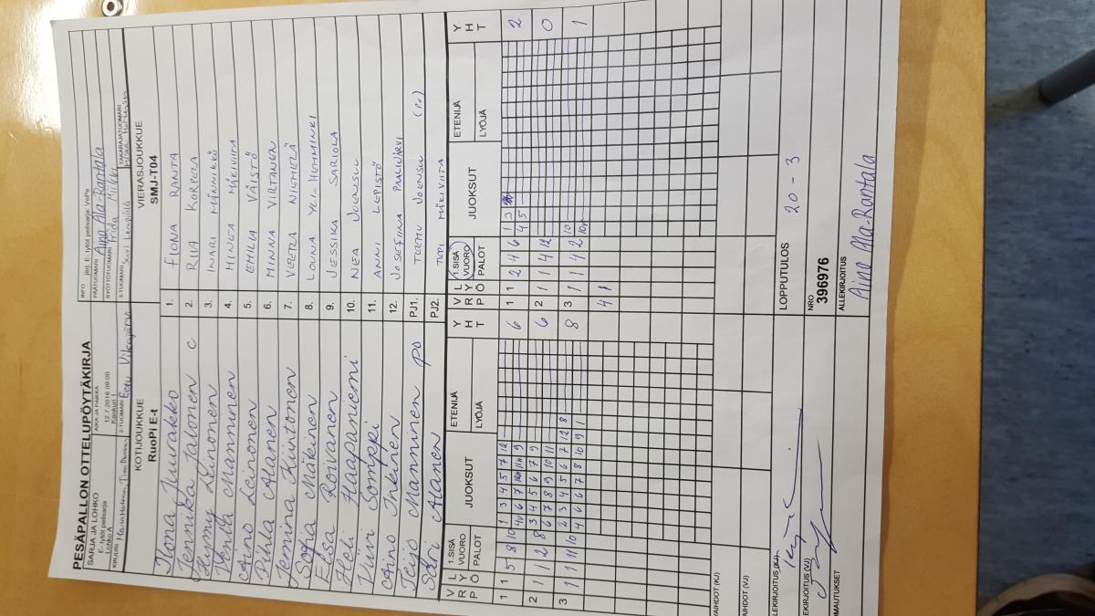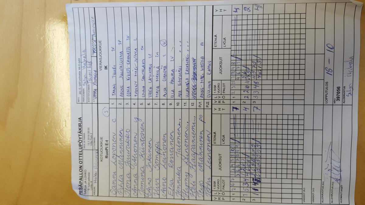 | 3. | KPK E-tytöt | 6 | 4 | 0 | 2 | 87 - 57 | 8 |