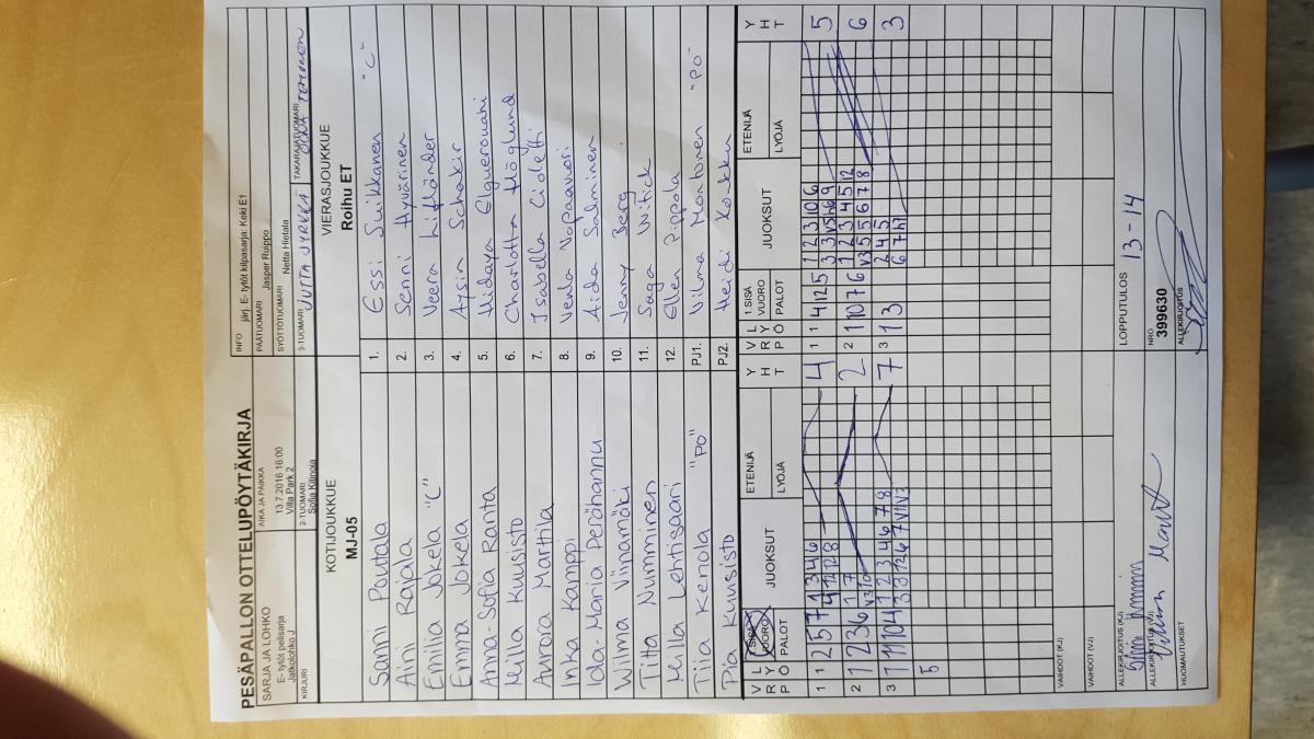 | 1. | Roihu ET | 3 | 3 | 0 | 0 | 38 - 34 | 6 |