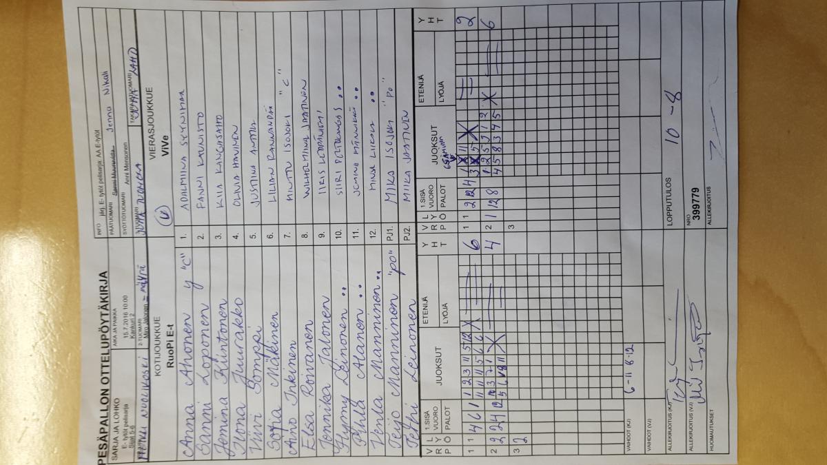 | 399779 | 15.7.2016 10:00 | Kankuri 2 | RuoPi E-t | ViVe | 10-8 | E- tytöt pelisarja: AA E-tytöt | näytä |