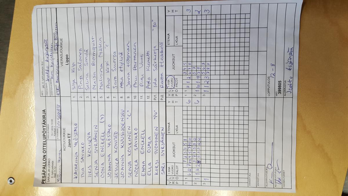 | 399805 | 15.7.2016 10:00 | Kankuri 1 | Jana ET | Lippo | 12-8 | E- tytöt pelisarja: ILU | näytä |
