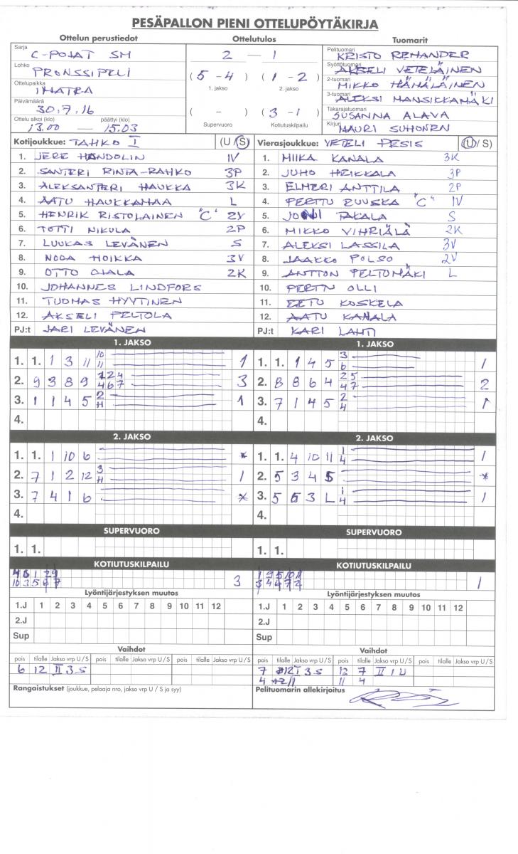 | 413804 | 30.7.2016 13:00 | 1. Ukonniemi | Tahko 1 | VePe | 2-1 (5-4, 1-2, 3-1) | Leiriorganisaatio | näytä |