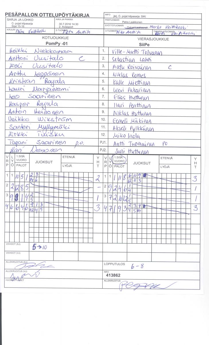 | 413862 | 30.7.2016 14:30 | 2. Aviasport | PomPy -01 | SiiPe | 6-8 | C- pojat kilpasarja: SiKi | näytä |