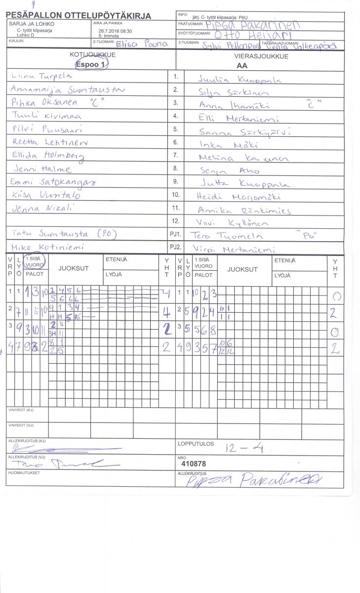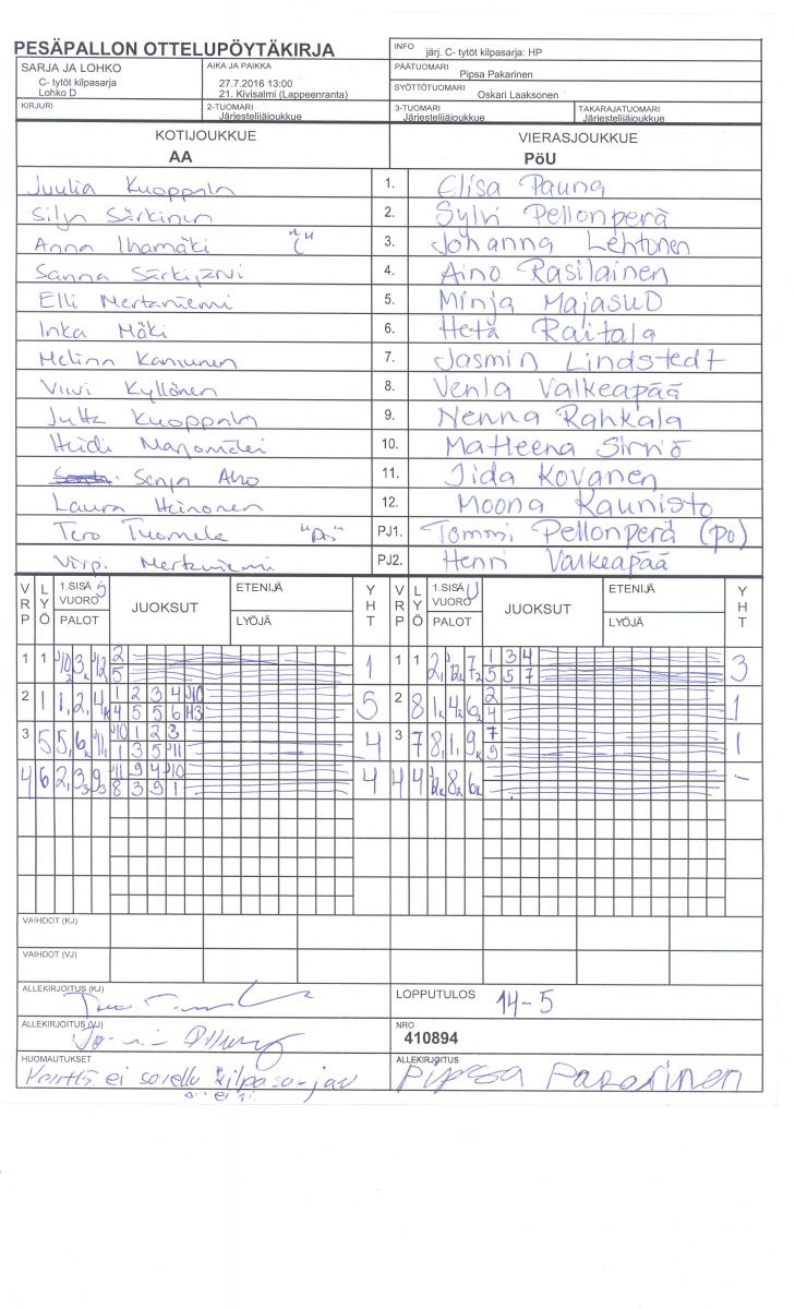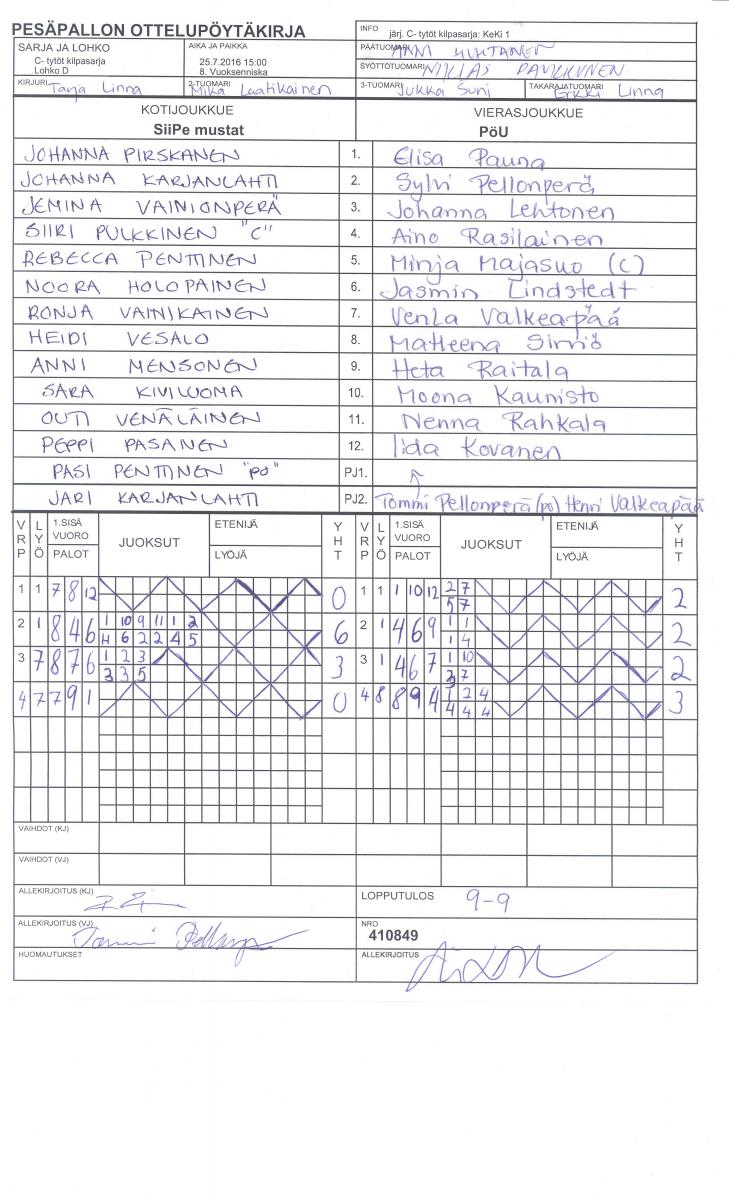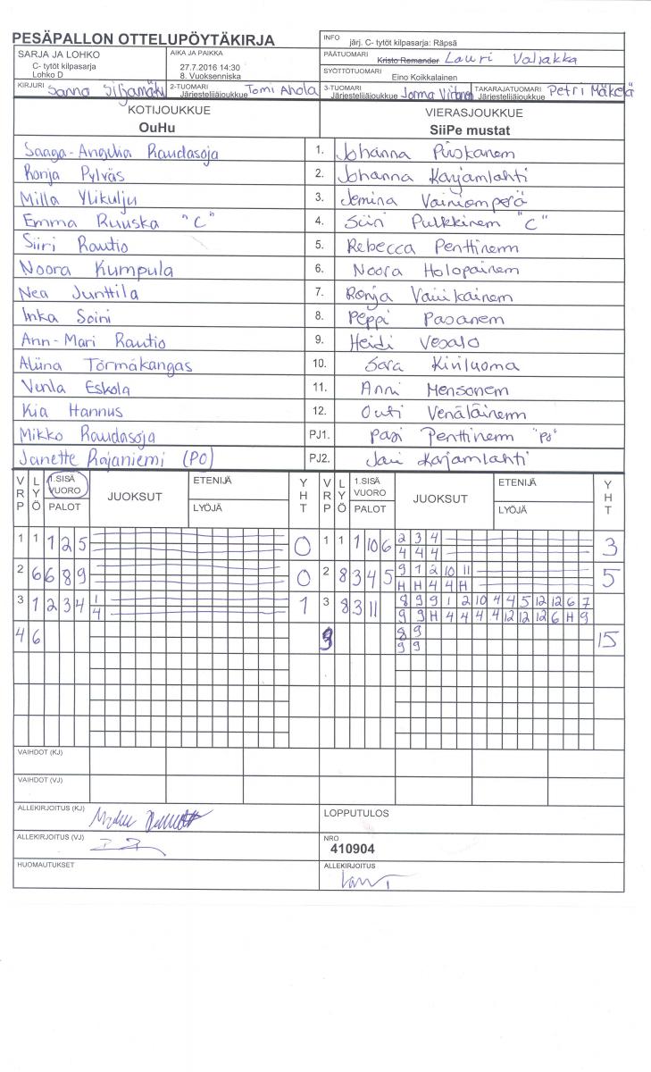 | 1. | SiiPe mustat | 5 | 4 | 1 | 0 | 56 - 21 | 9 |