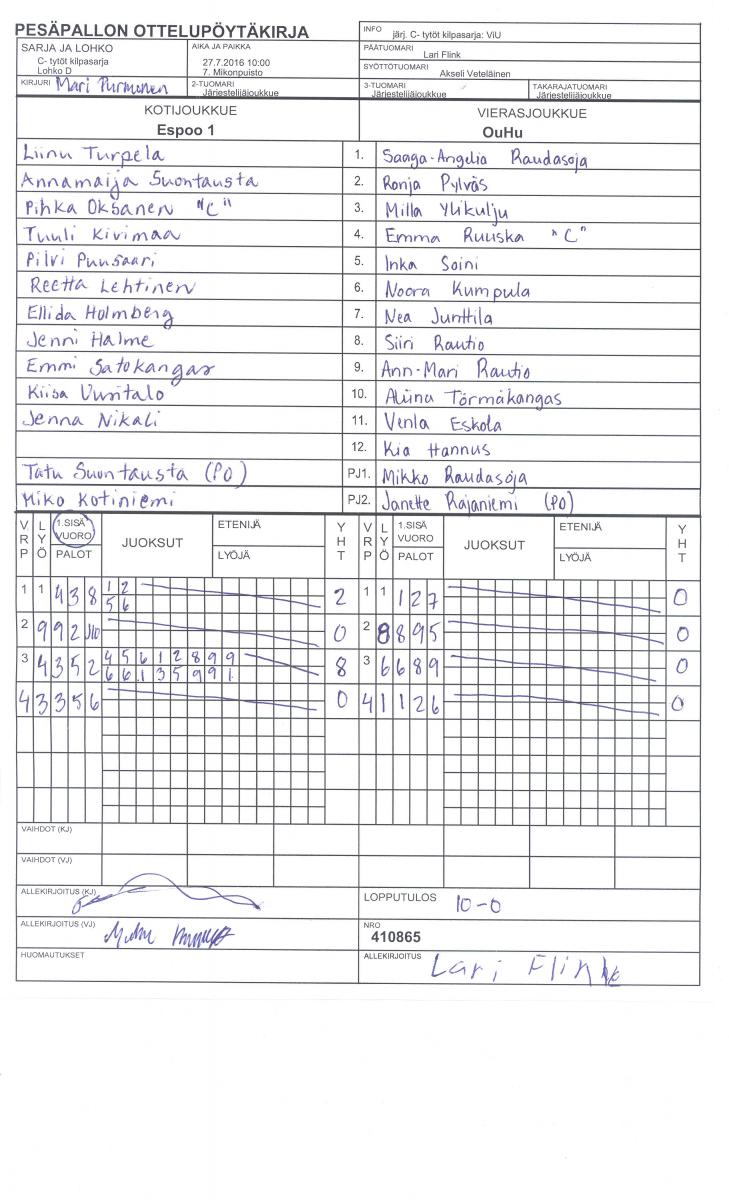 | # | Joukkue | O | V | T | H | JUOKSUT | P |