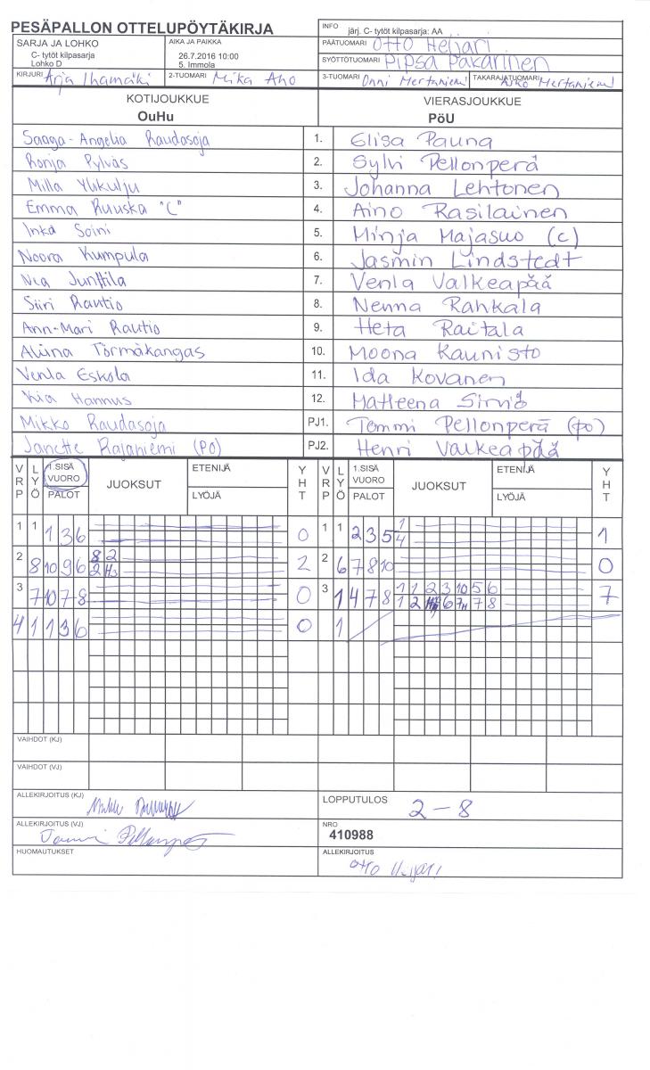 | 4. | OuHu | 5 | 2 | 0 | 3 | 20 - 53 | 4 |