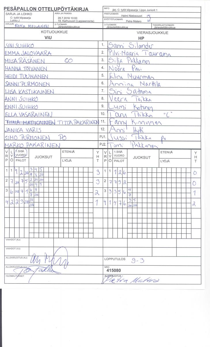 | 2. | Lippo Juniorit 1 | 3 | 2 | 0 | 1 | 24 - 12 | 4 |
