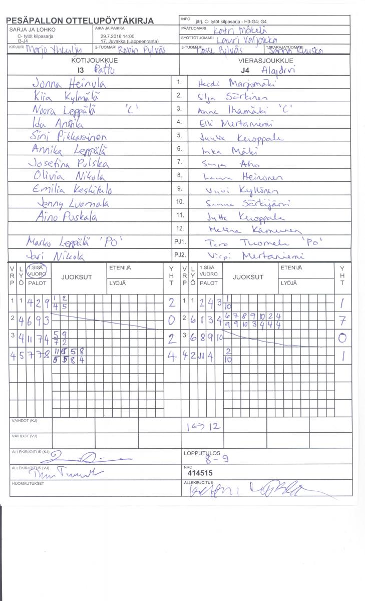 | 414515 | 29.7.2016 14:00 | 17. Juvakka (Lappeenranta) | PattU | AA | 8-9 | C- tytöt kilpasarja: OuHu | näytä |