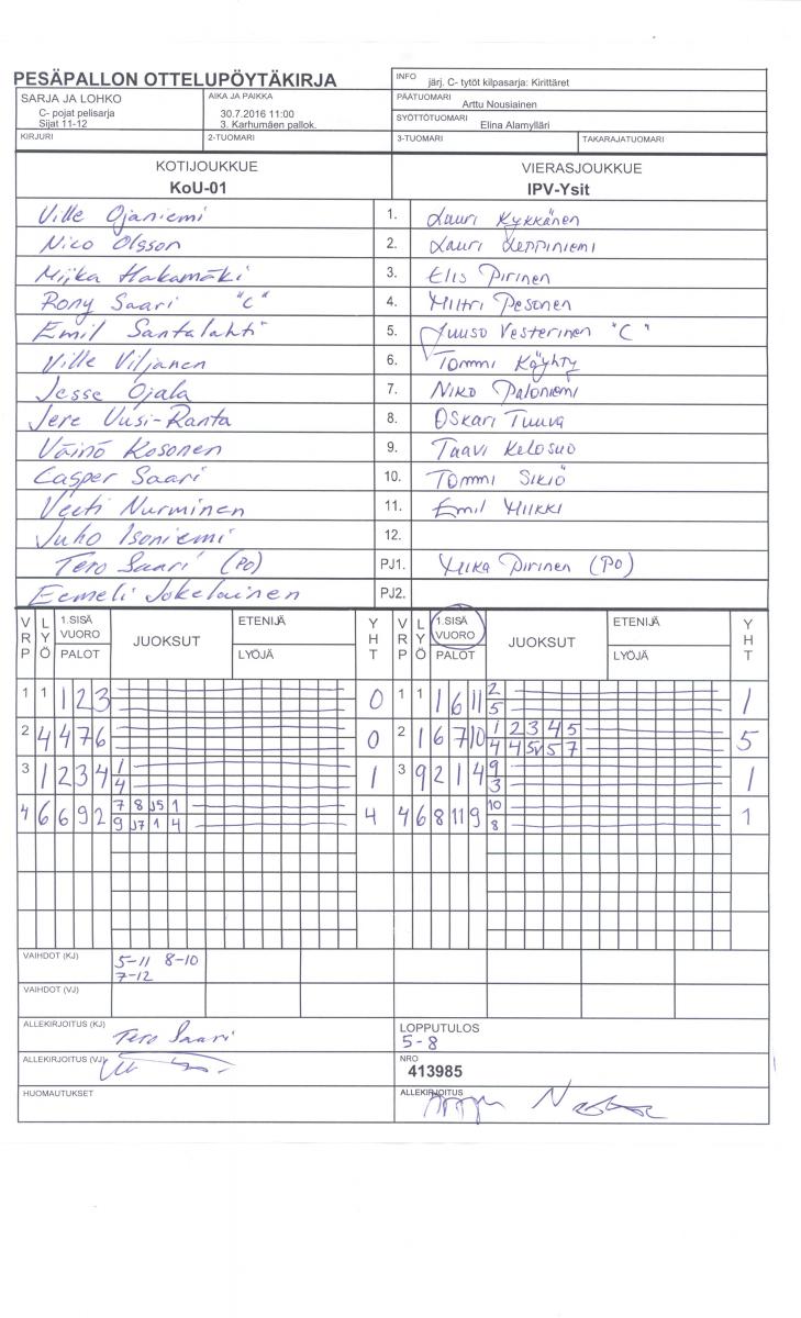| 413985 | 30.7.2016 11:00 | 3. Karhumäen pallok. | KoU-01 | IPV-Ysit | 5-8 | C- tytöt kilpasarja: Kirittäret | näytä |