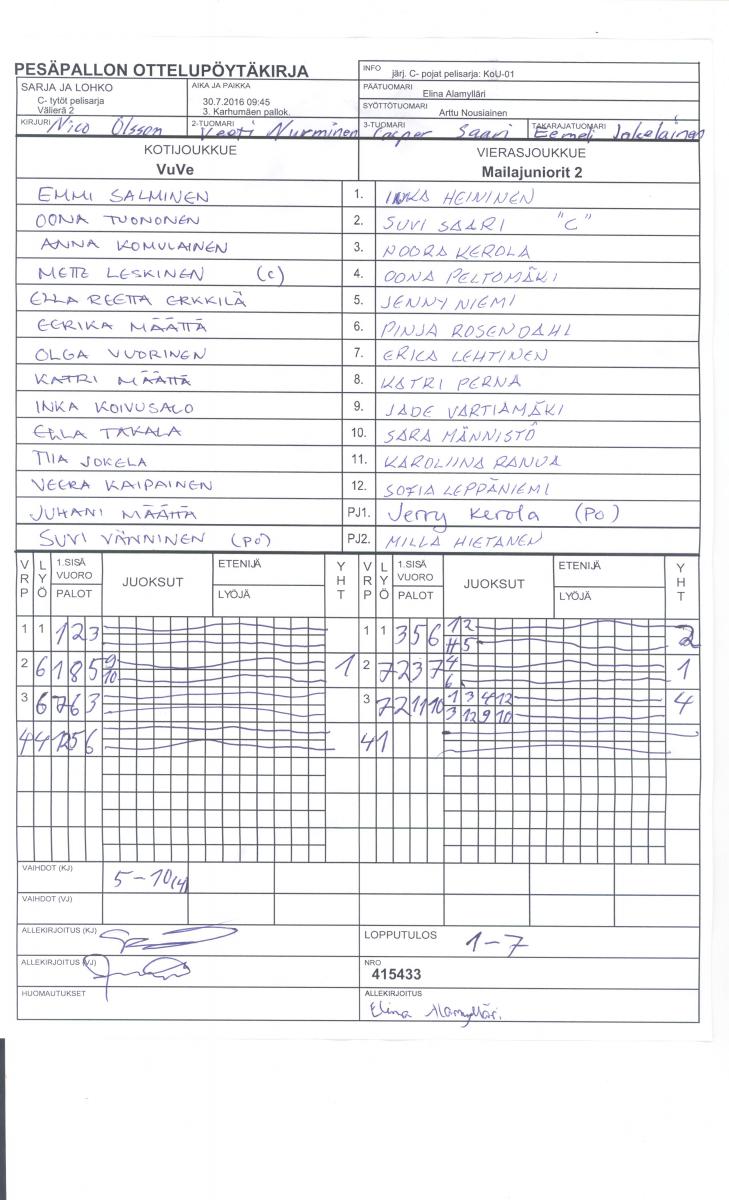 | 415433 | 30.7.2016 09:45 | 3. Karhumäen pallok. | VuVe | Mailajuniorit 2 | 1-7 | C- pojat pelisarja: KoU-01 | näytä |