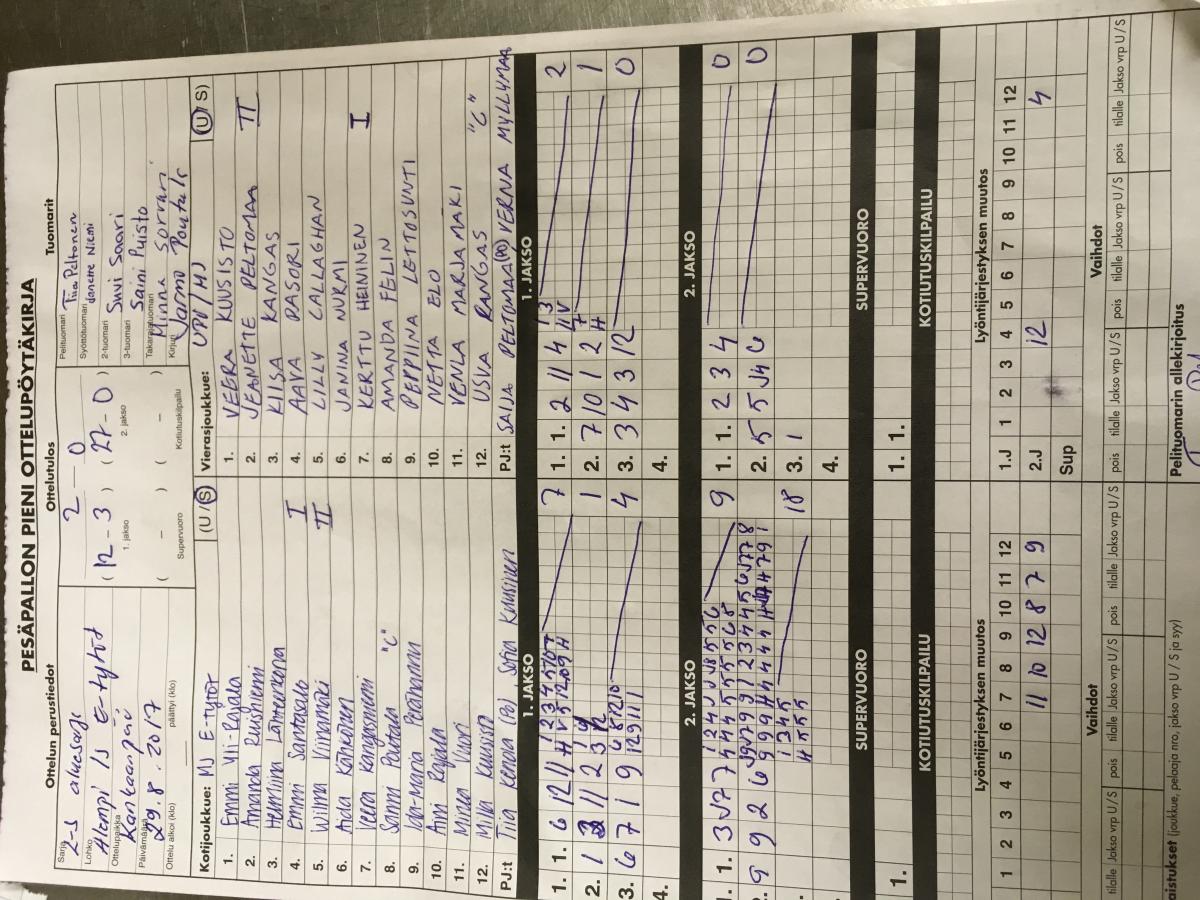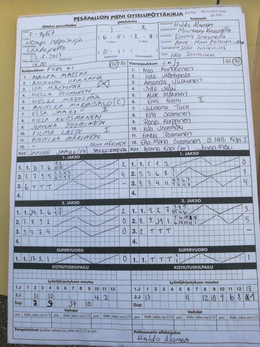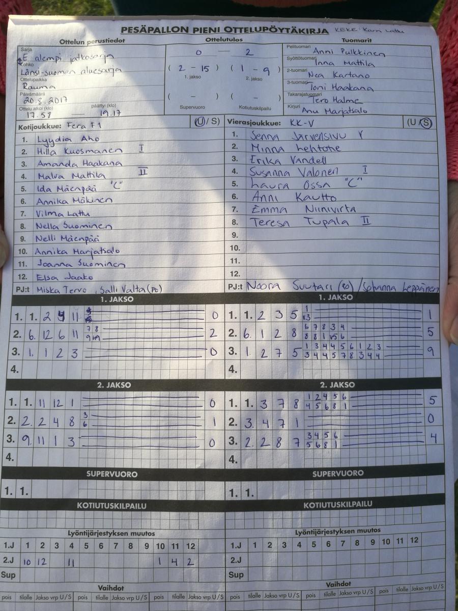 | 520263 | 20.8.2017 18:00 | Fera F1 | KK-V E-tytöt | 0-2 (2-15, 1-9) | näytä |