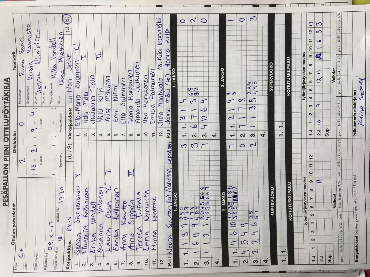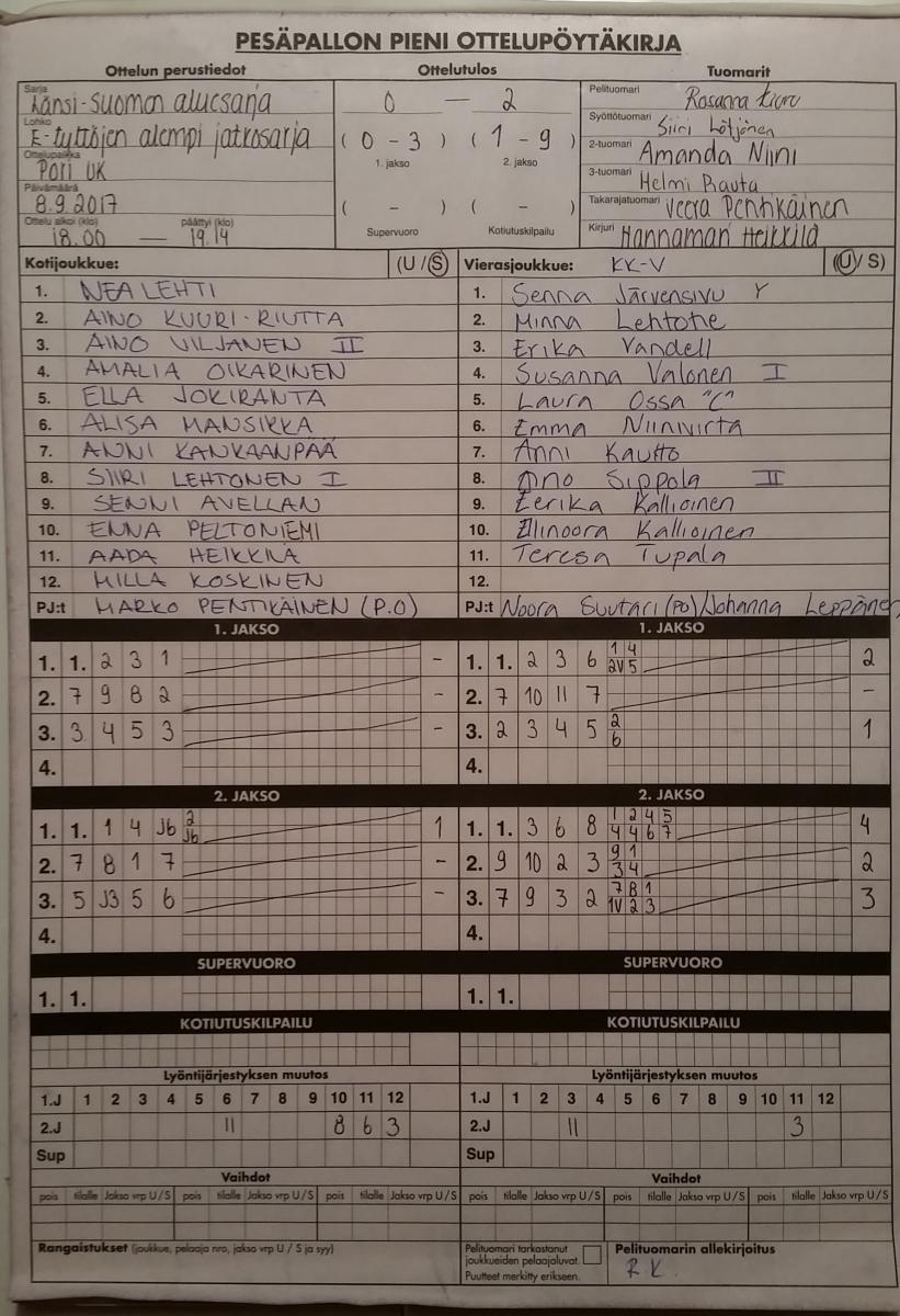 | 520247 | 29.8.2017 18:00 | KK-V E-tytöt | Lajy | 2-0 (13-2, 9-4) | näytä |