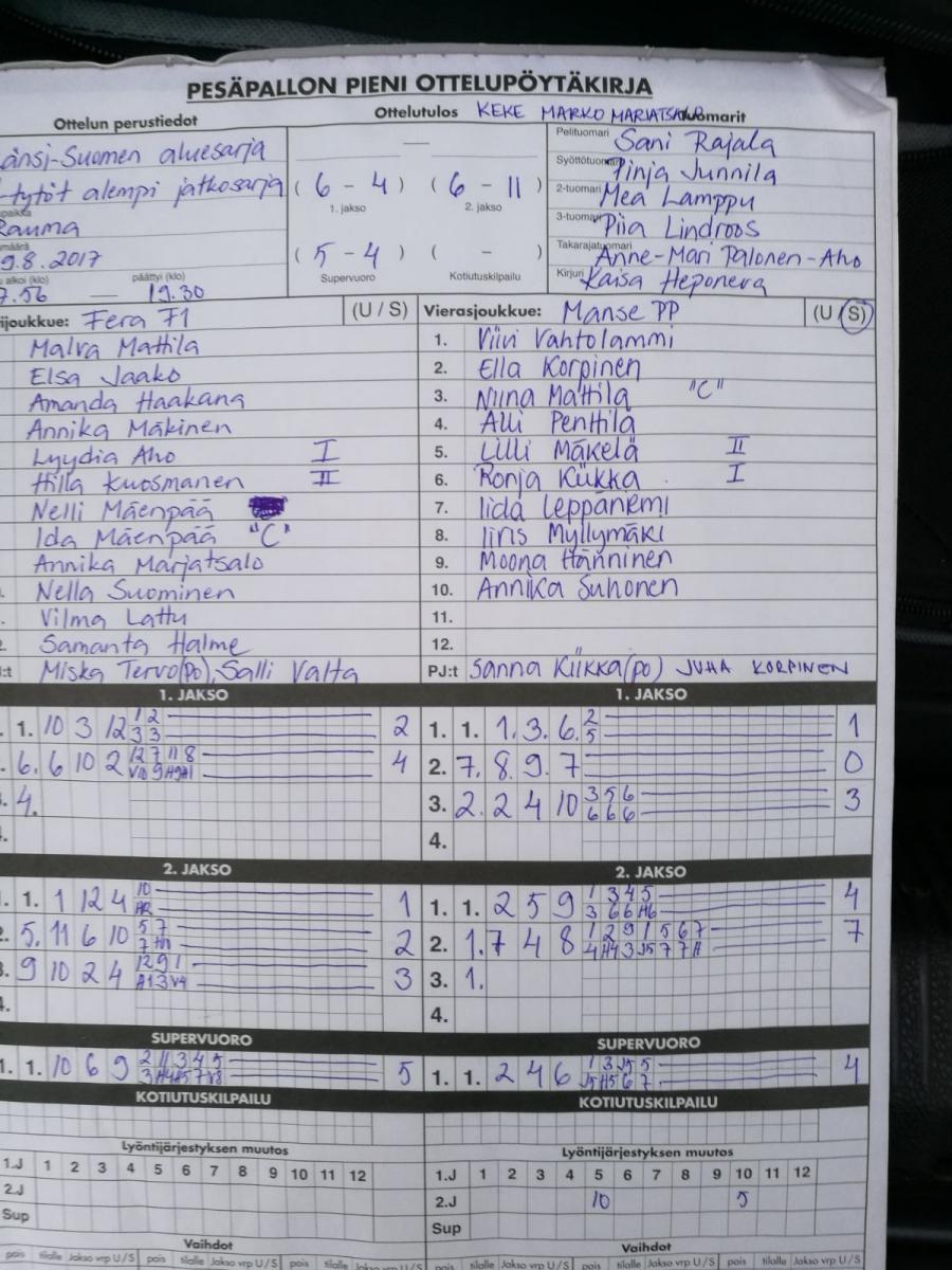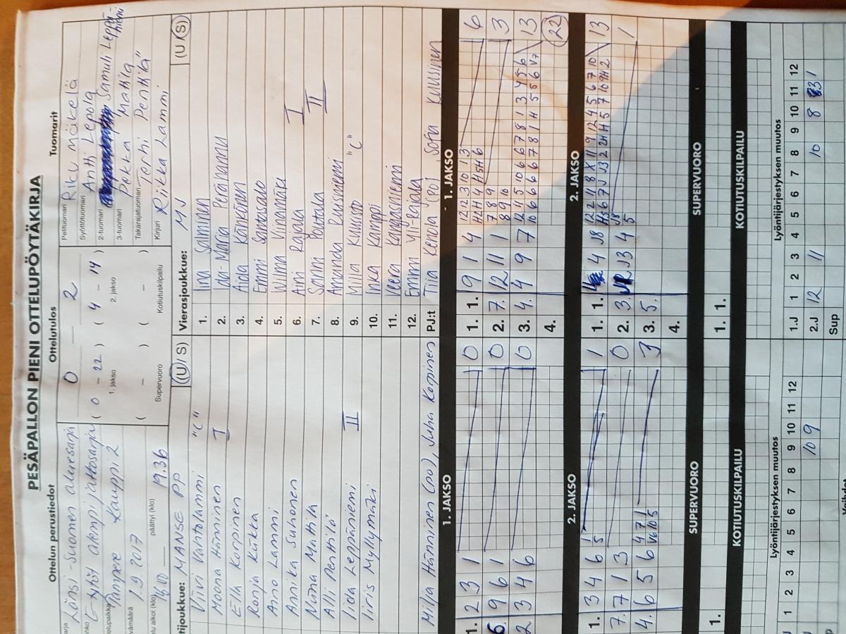 | 520069 | 29.8.2017 18:00 | Pesäkarhut E06 | Pesäkarhut F07 | 2-0 (17-2, 19-8) | näytä |