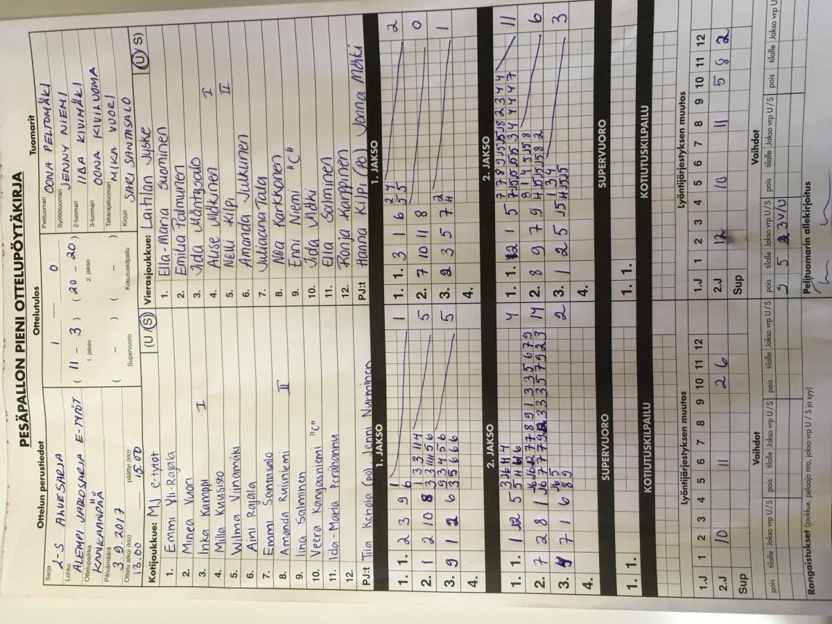 | 520030 | 25.8.2017 18:00 | UP-V / MJ | Lajy | 0-2 (0-21, 7-17) | näytä |