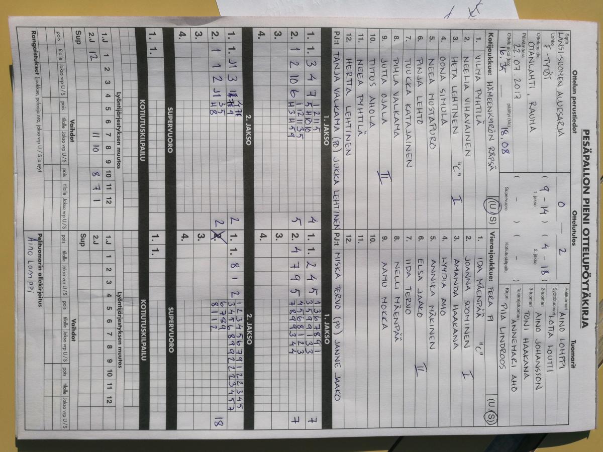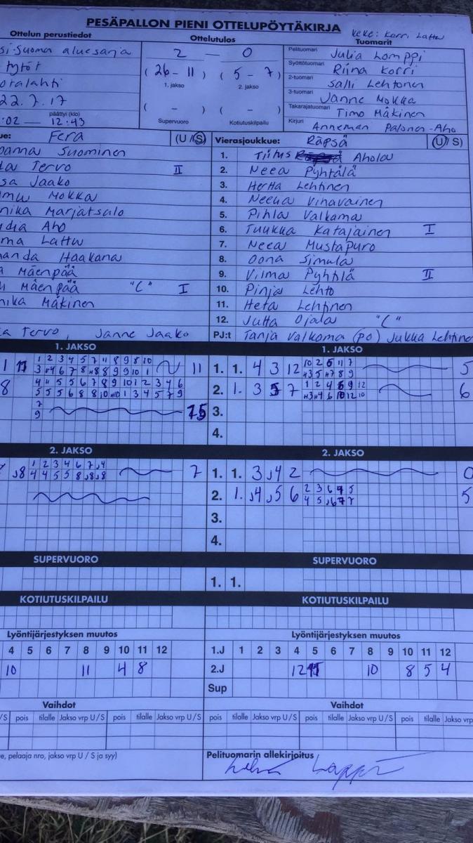 | 481700 | 22.7.2017 17:00 | Räpsä | Fera F1 | 0-2 (9-14, 4-18) | näytä |