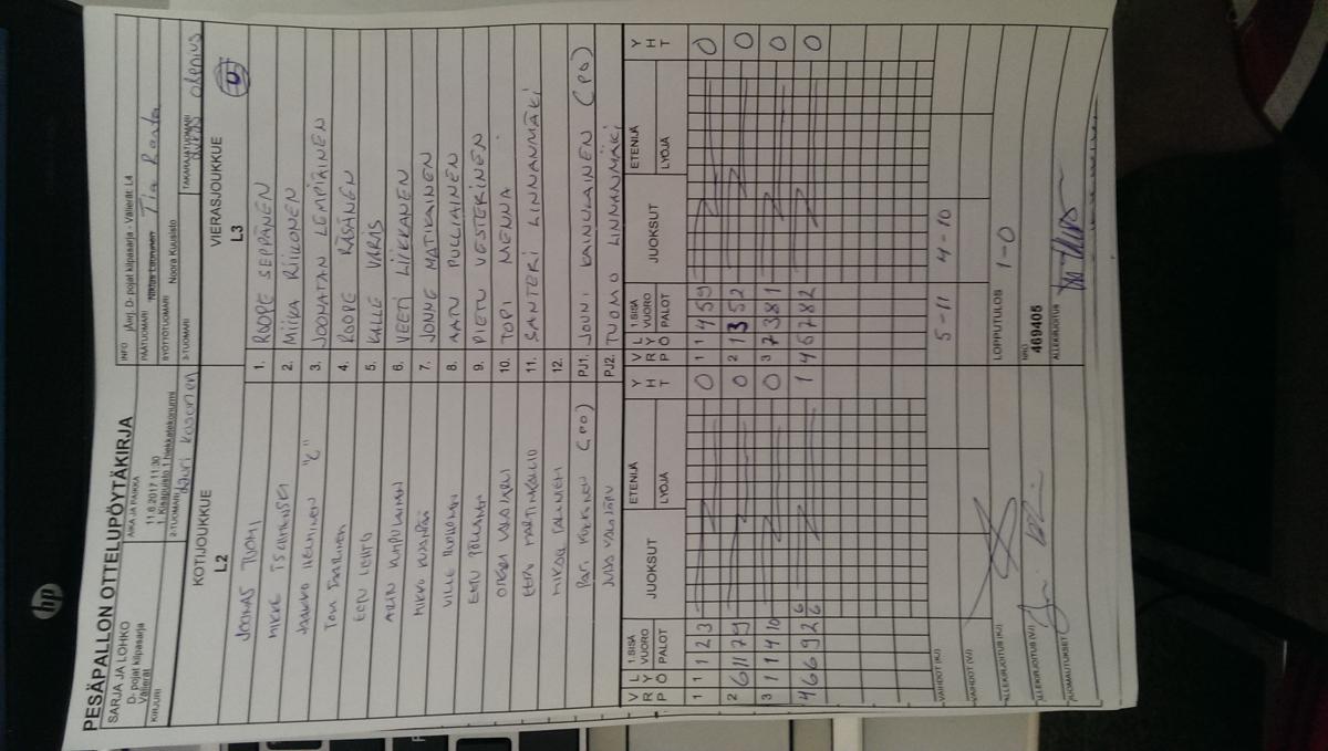 | 469395 | 11.6.2017 10:30 | 1. Kisapuisto 1 hiekkatekonurmi | LMV DP valkoinen | KePe | 8-5 | D- pojat kilpasarja: IPV | näytä |